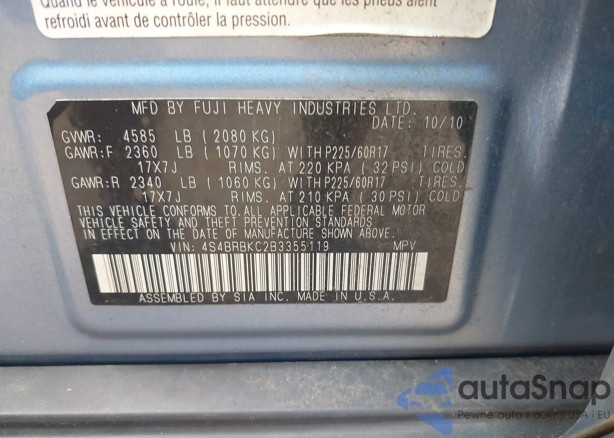 LOT: 42913732 VIN: 4S4BRBKC2B3355119