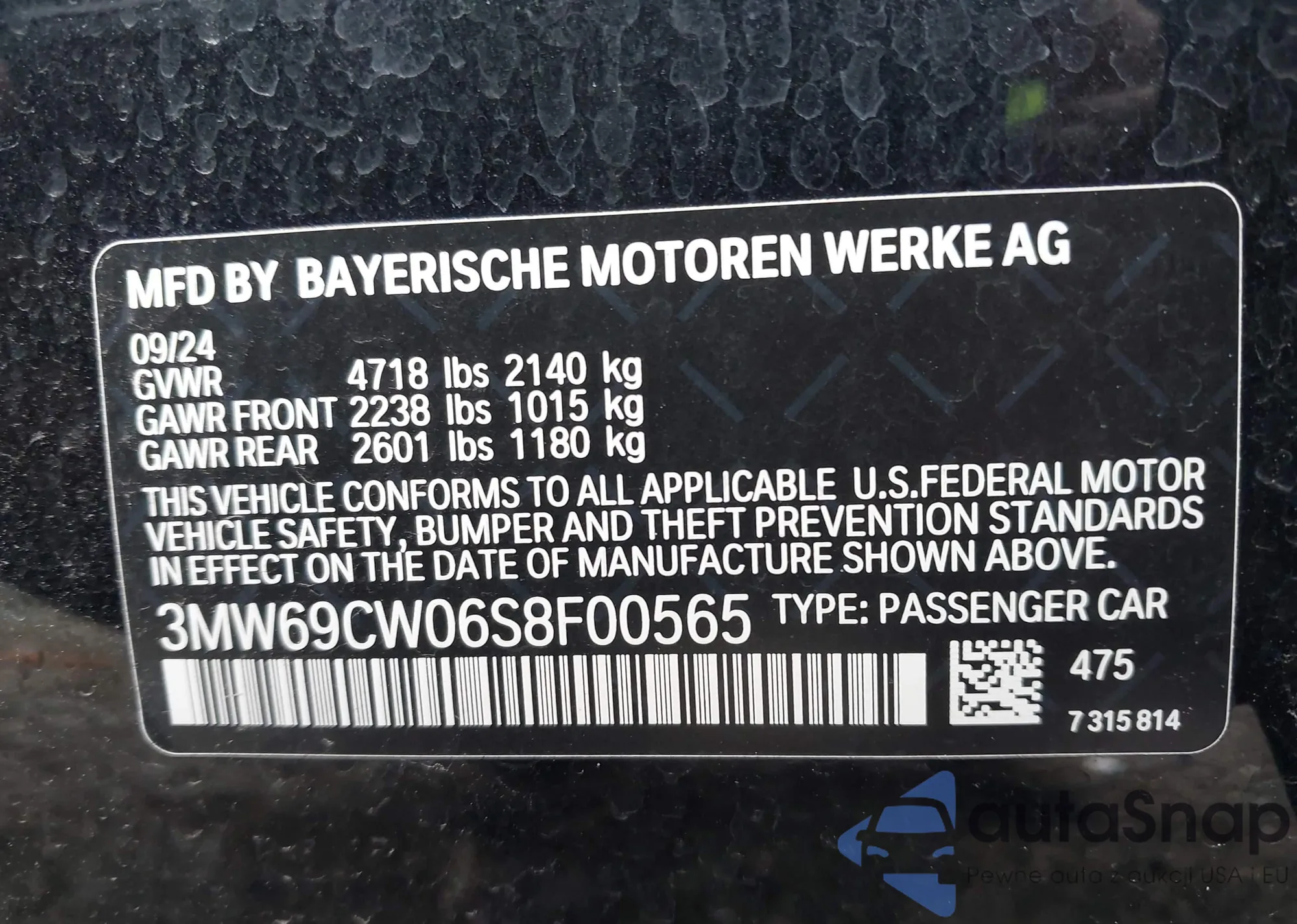 • VIN 3MW69CW06S8F00565