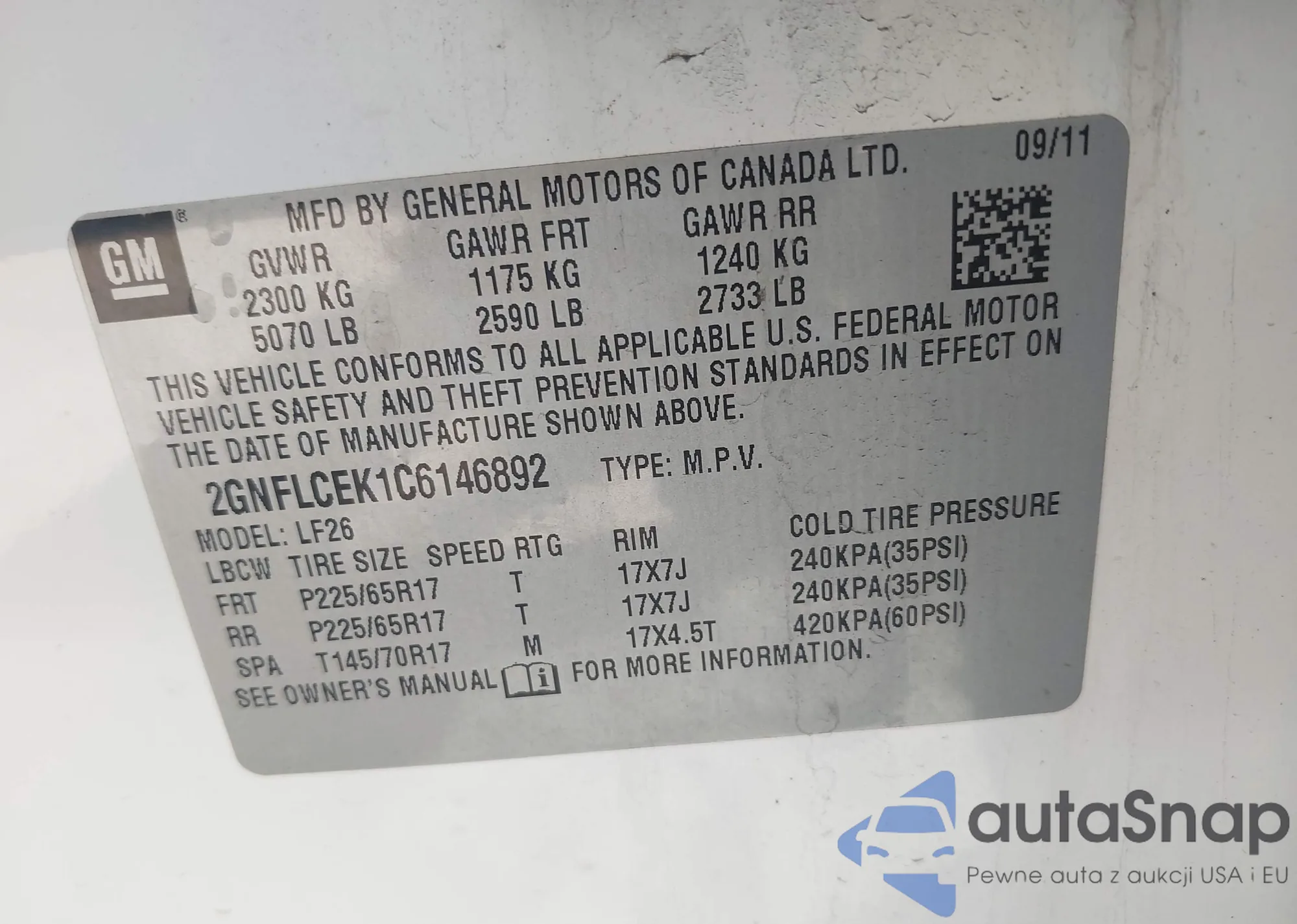 • VIN 2GNFLCEK1C6146892