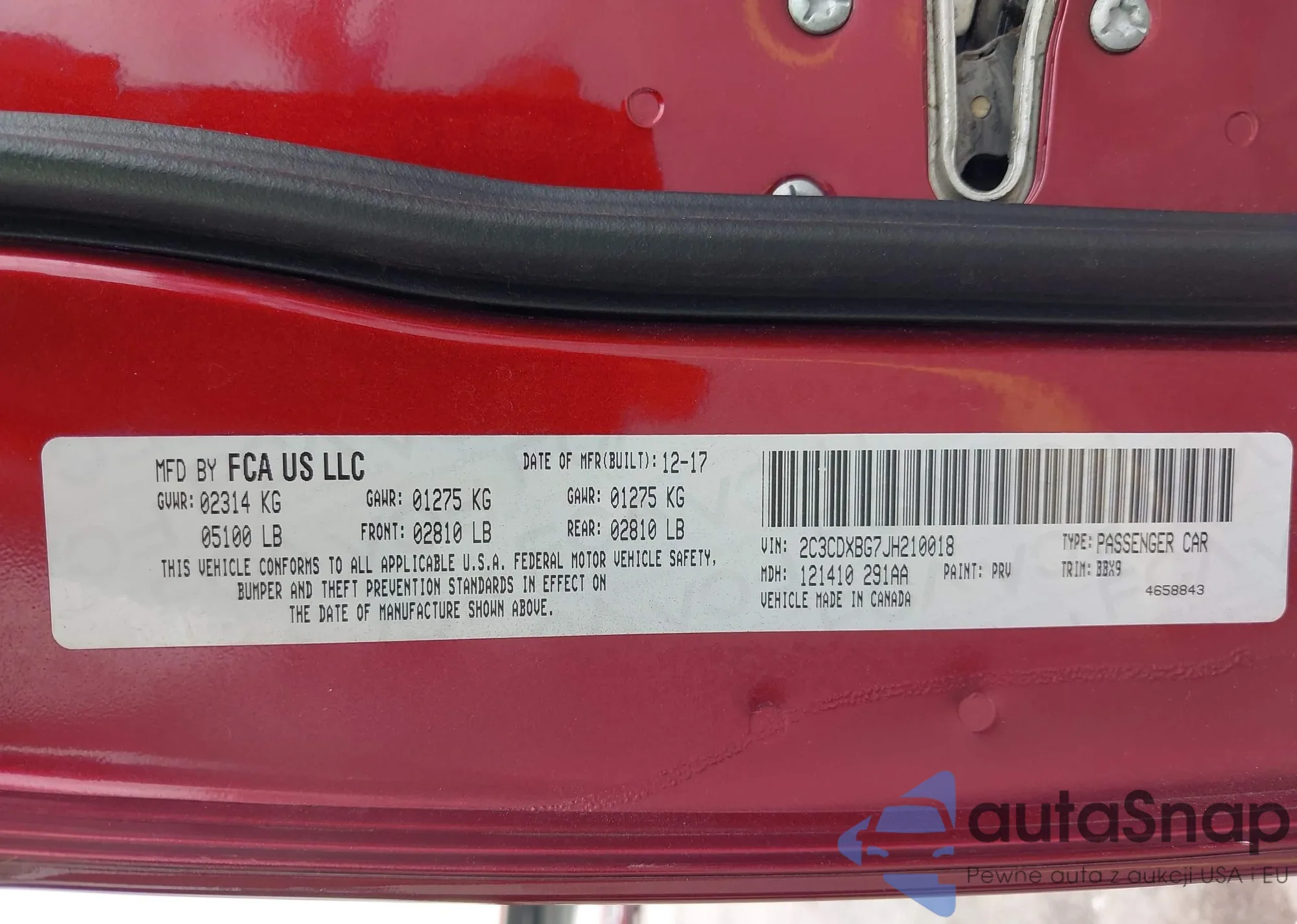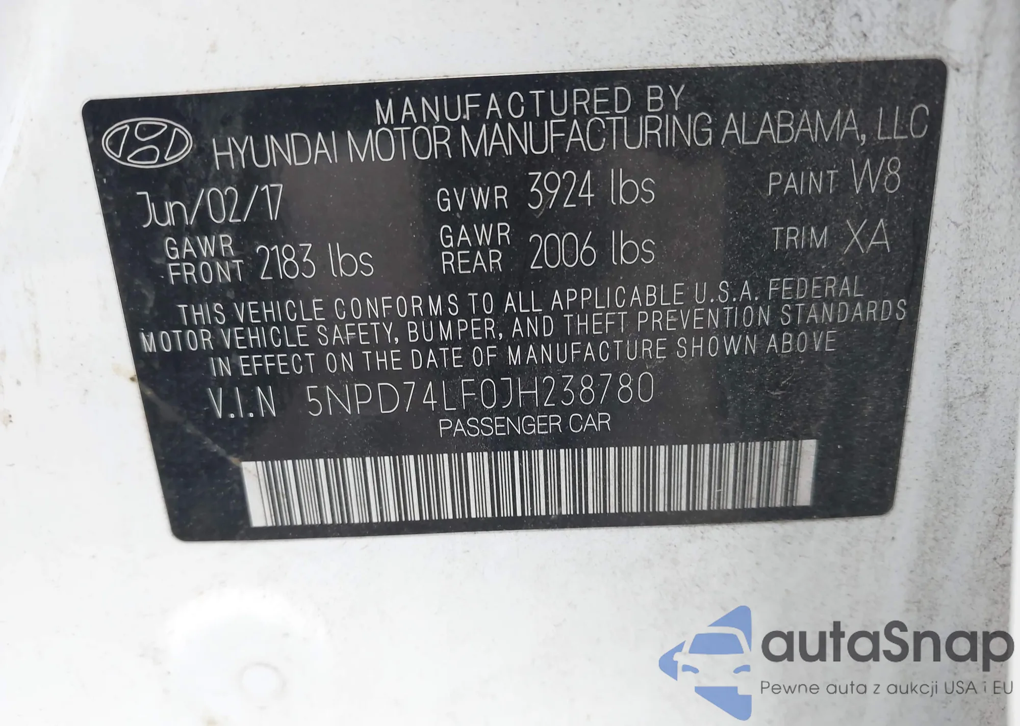 LOT: 42903109 VIN: 5NPD74LF0JH238780