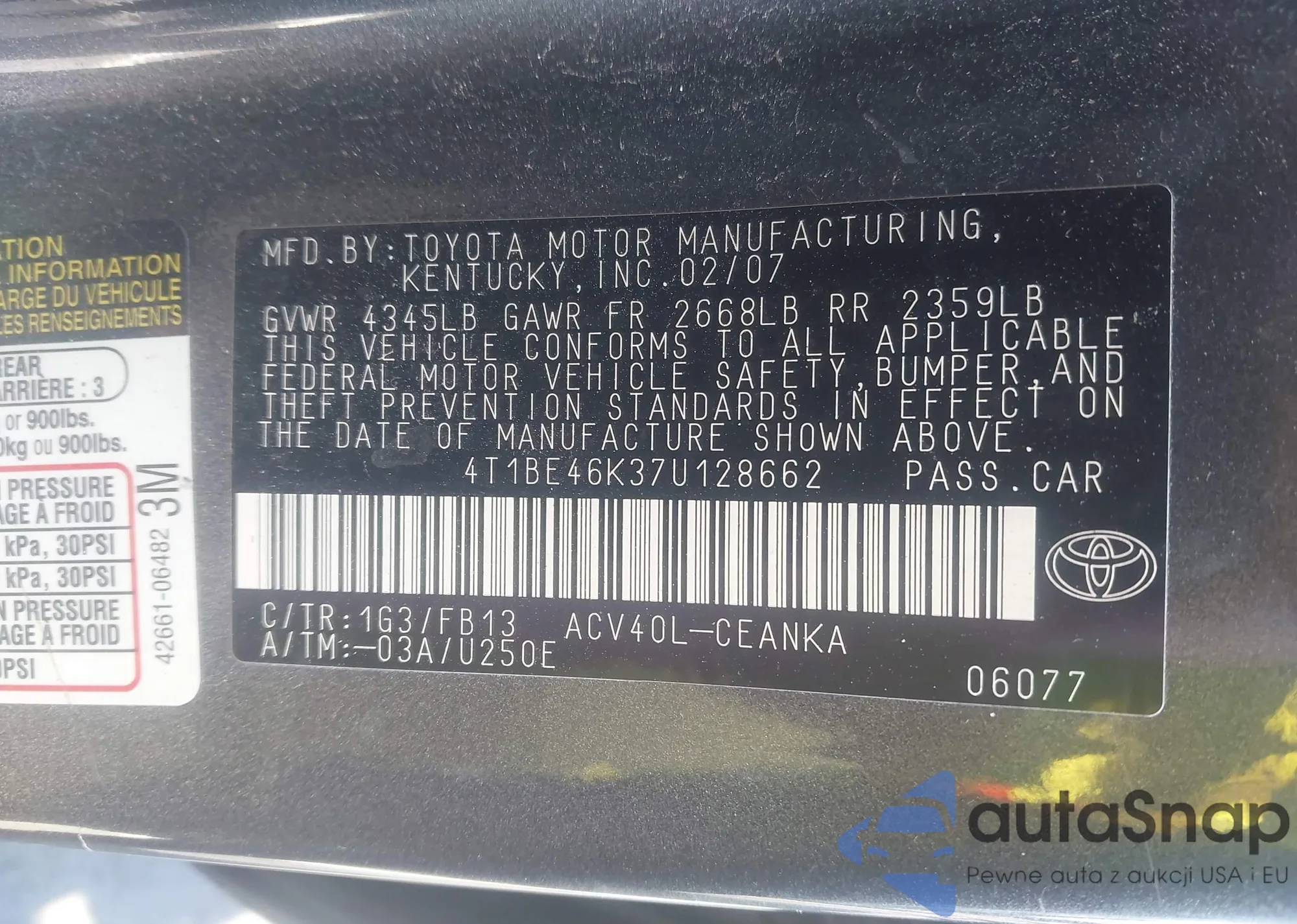 • VIN 4T1BE46K37U128662