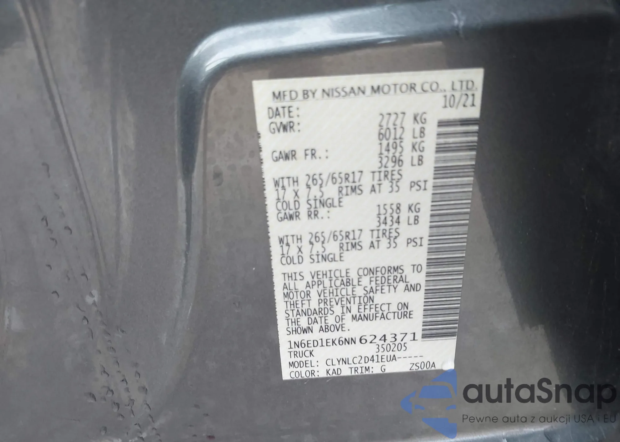 • VIN 1N6ED1EK6NN624371
