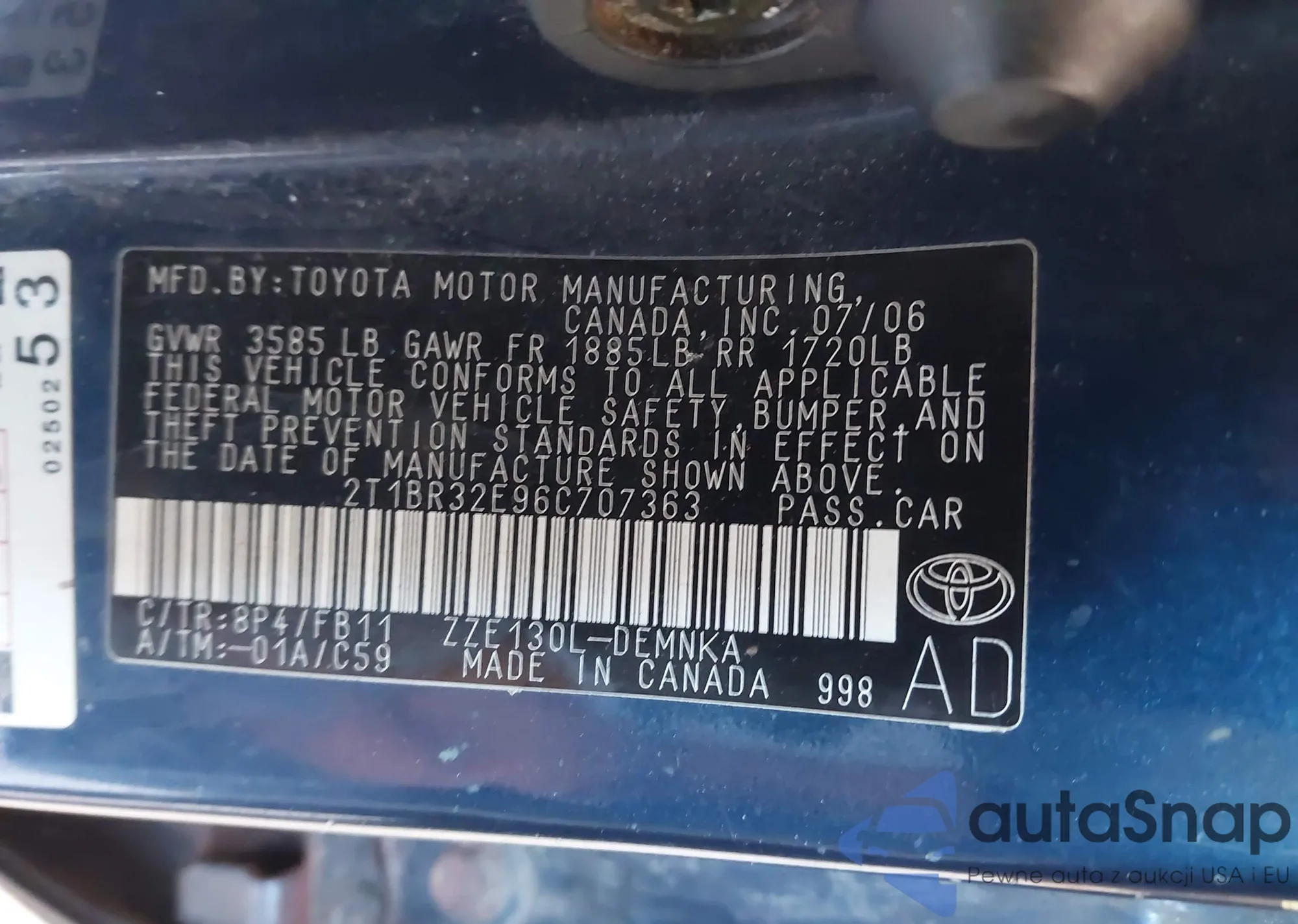 LOT: 42810745 VIN: 1NXBR30E86Z688547