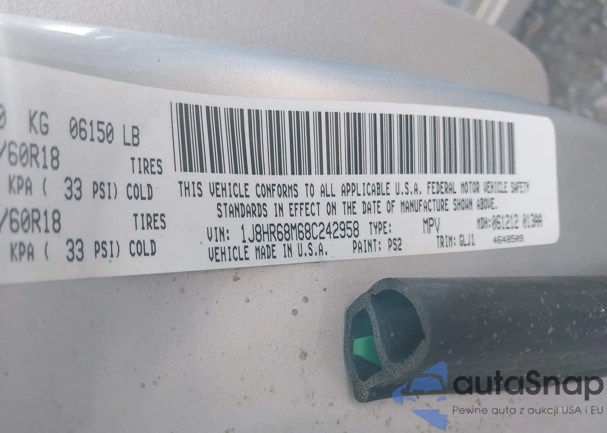 • VIN 1J8HR68M68C242958