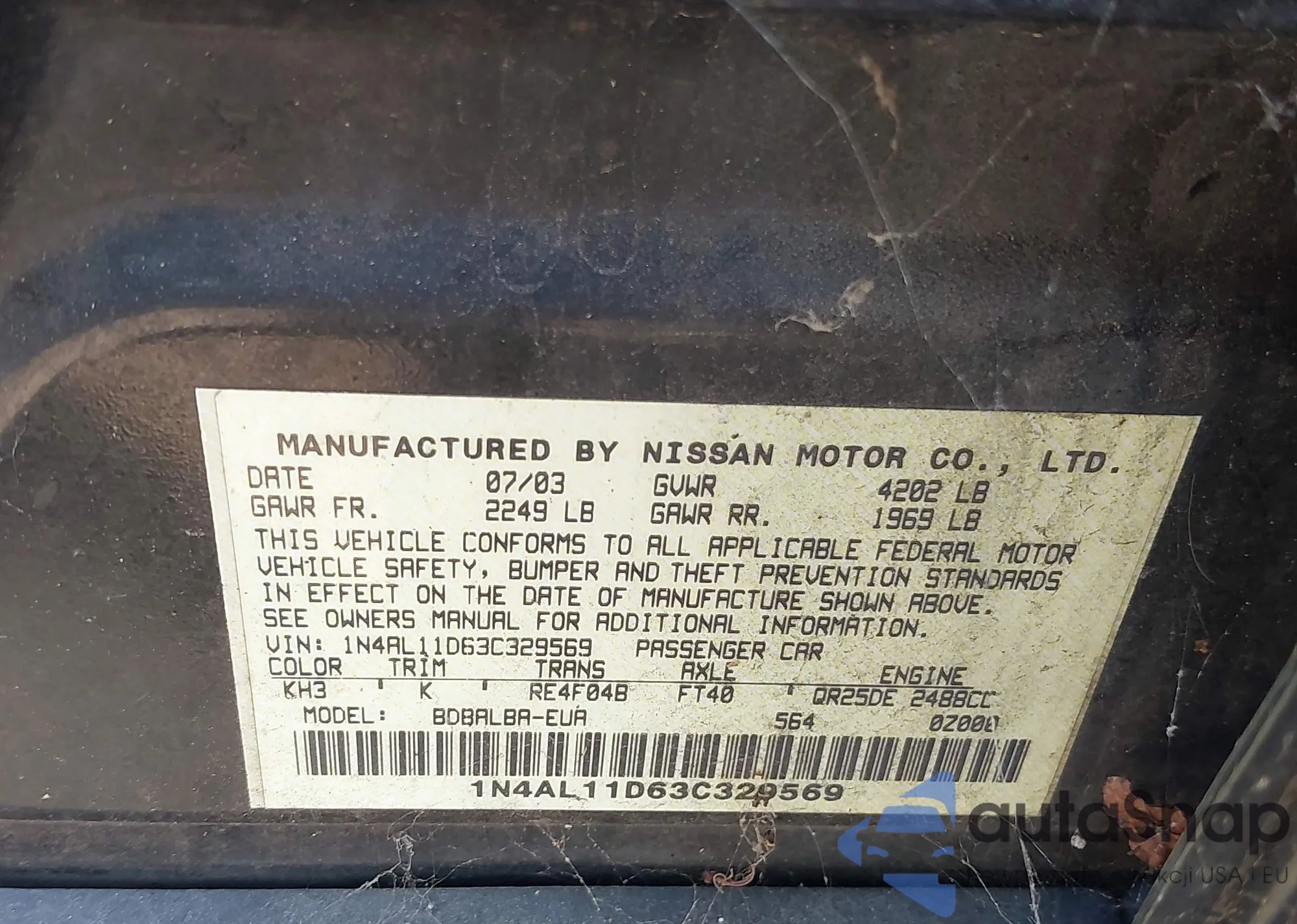 • VIN 1N4AL11D63C329569