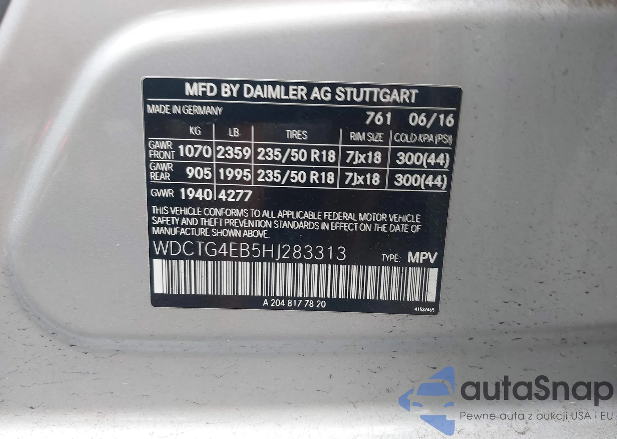 • VIN WDCTG4EB5HJ283313