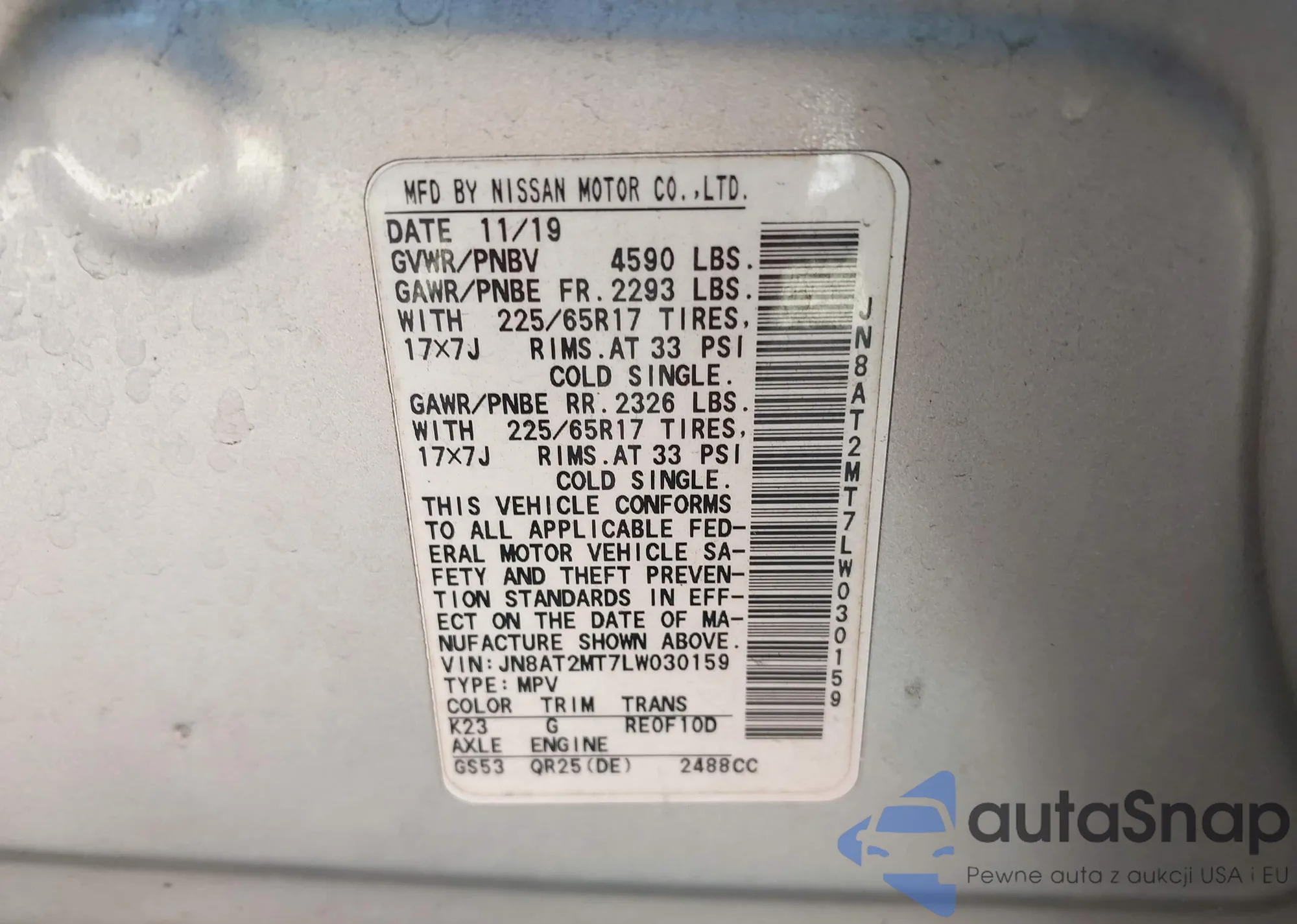 LOT: 41815383 VIN: JN1BJ1CV9LW257312