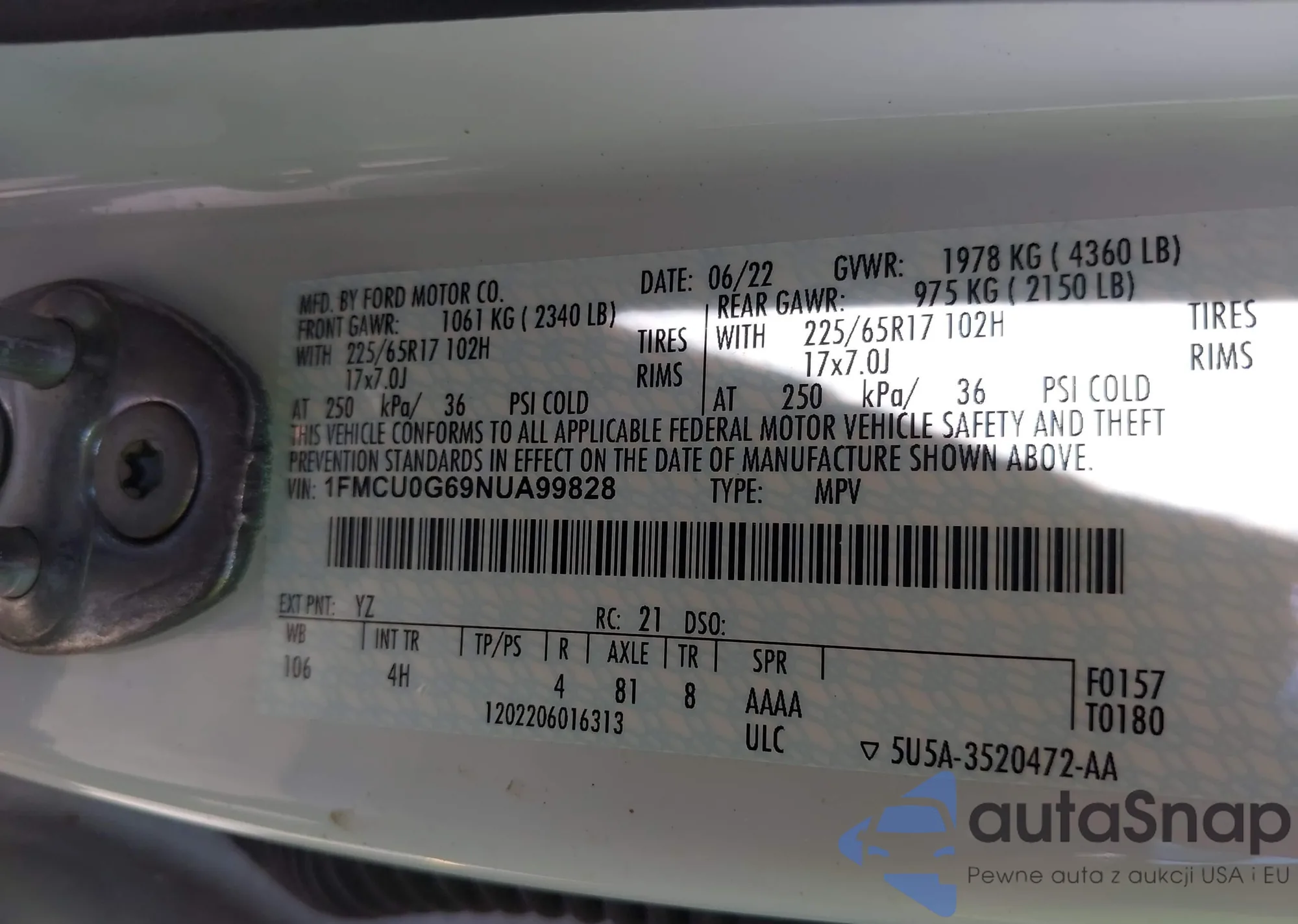 LOT: 42943064 VIN: 5NMSG3AB7AH403061