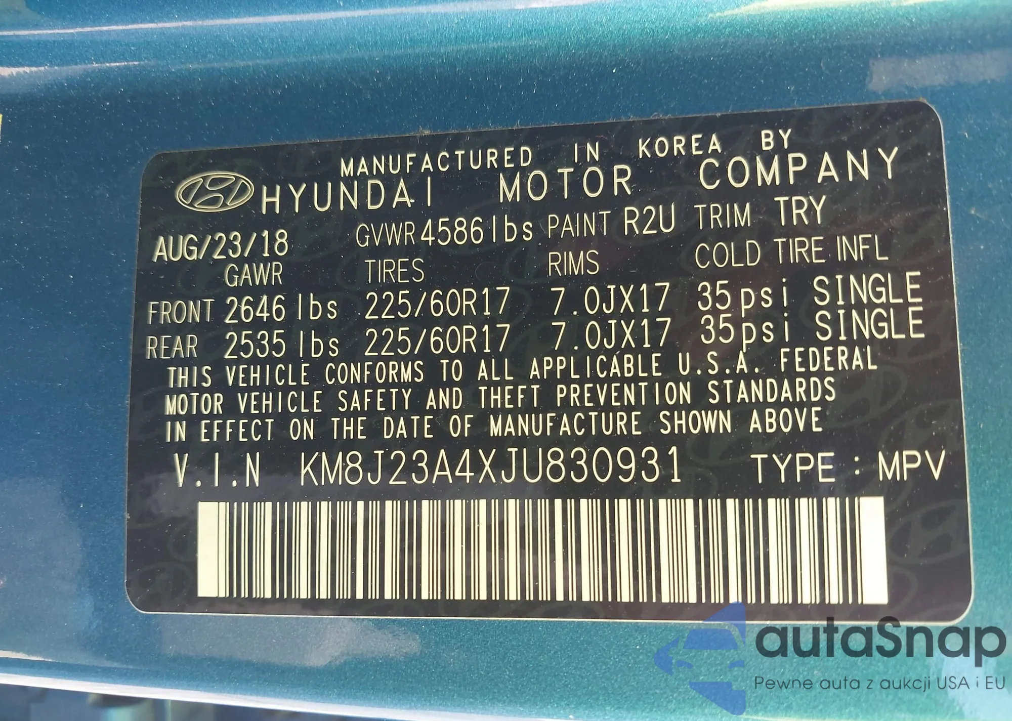 • VIN KM8J23A4XJU830931