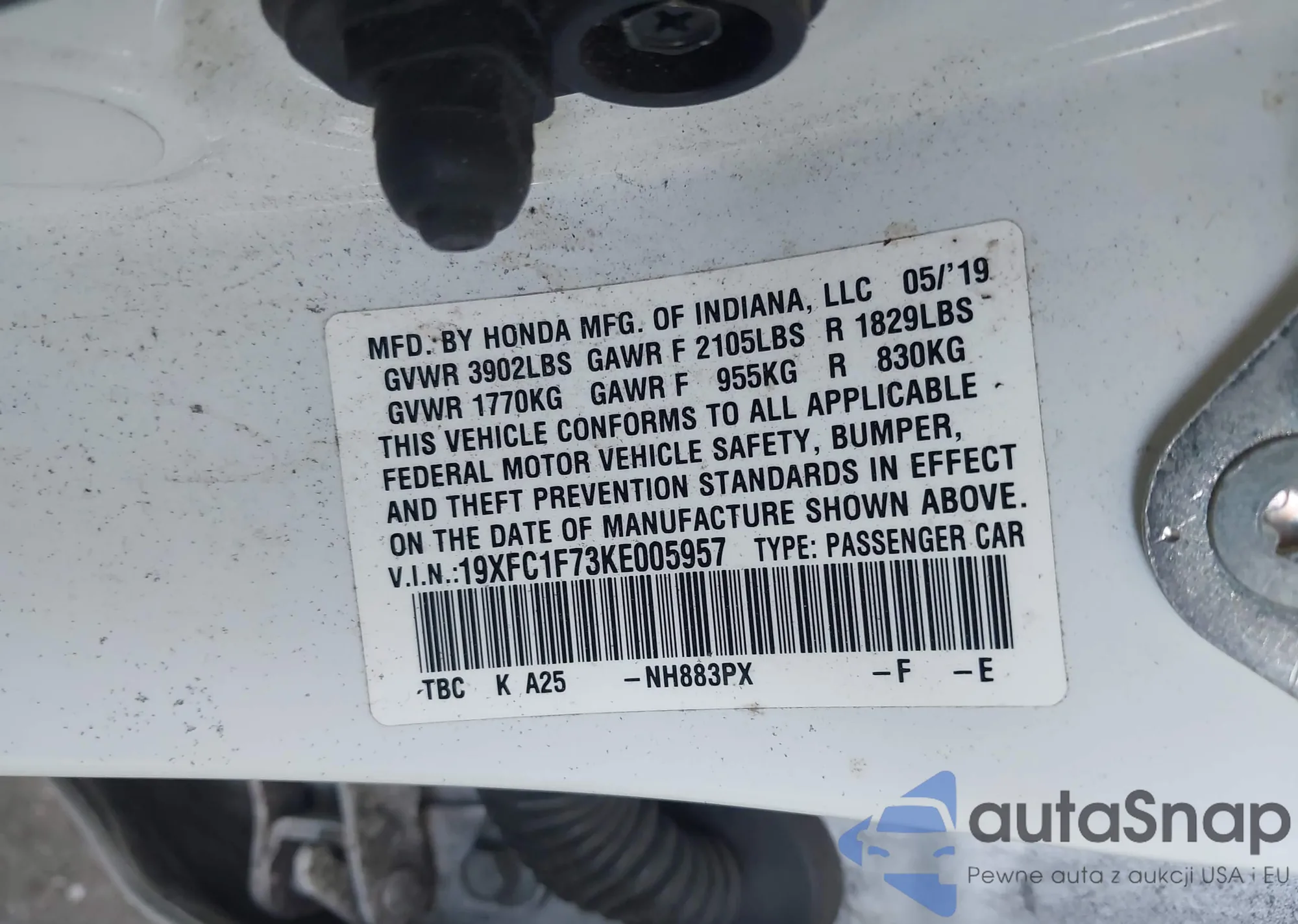 • VIN 19XFC1F73KE005957