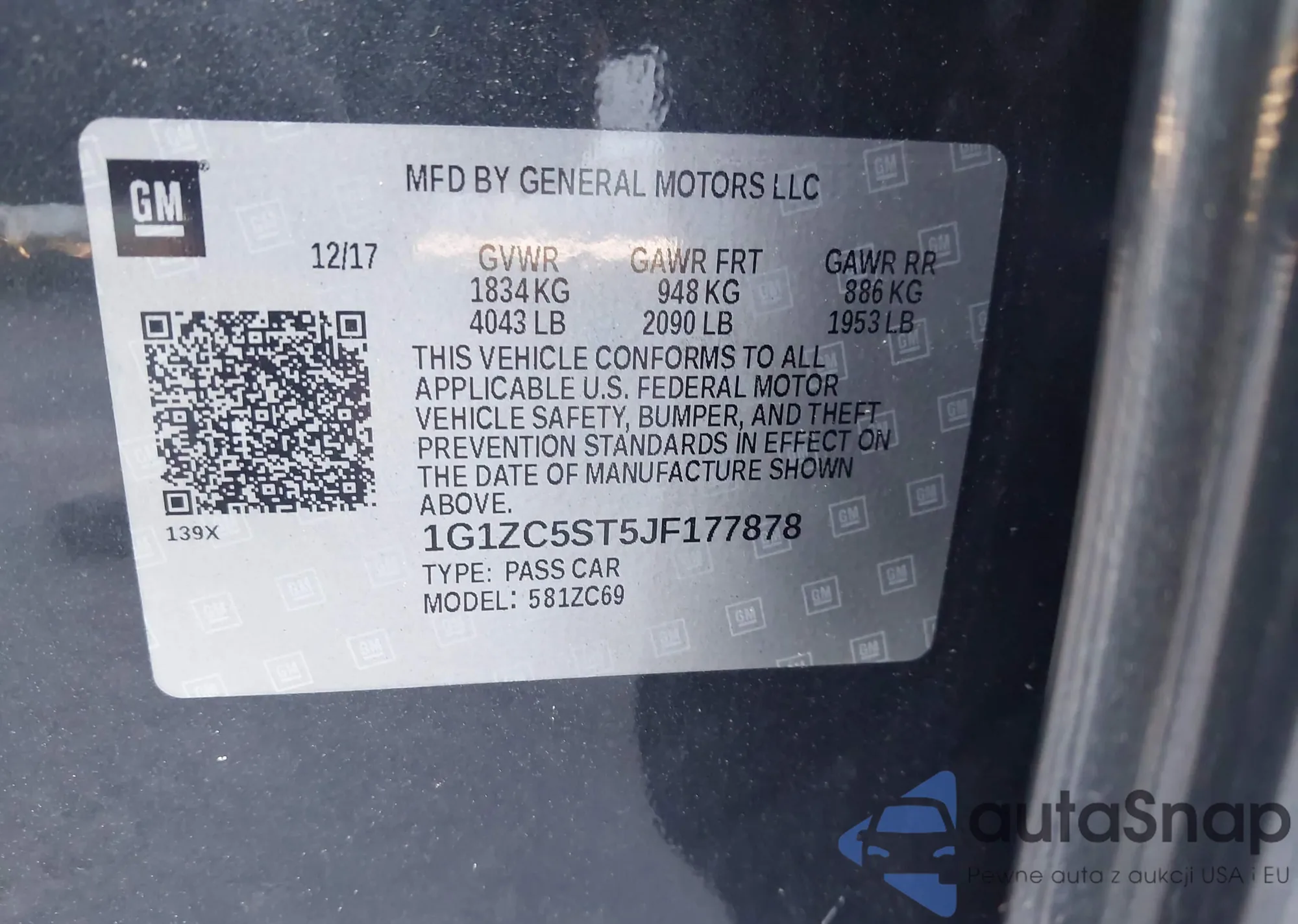 • VIN 1G1ZC5ST5JF177878