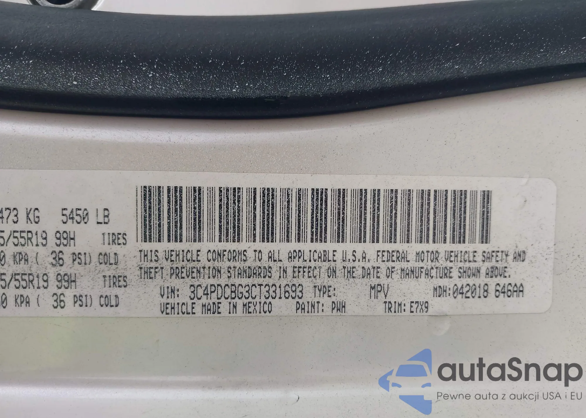 LOT: 42985755 VIN: 5FNRL6H50KB034882