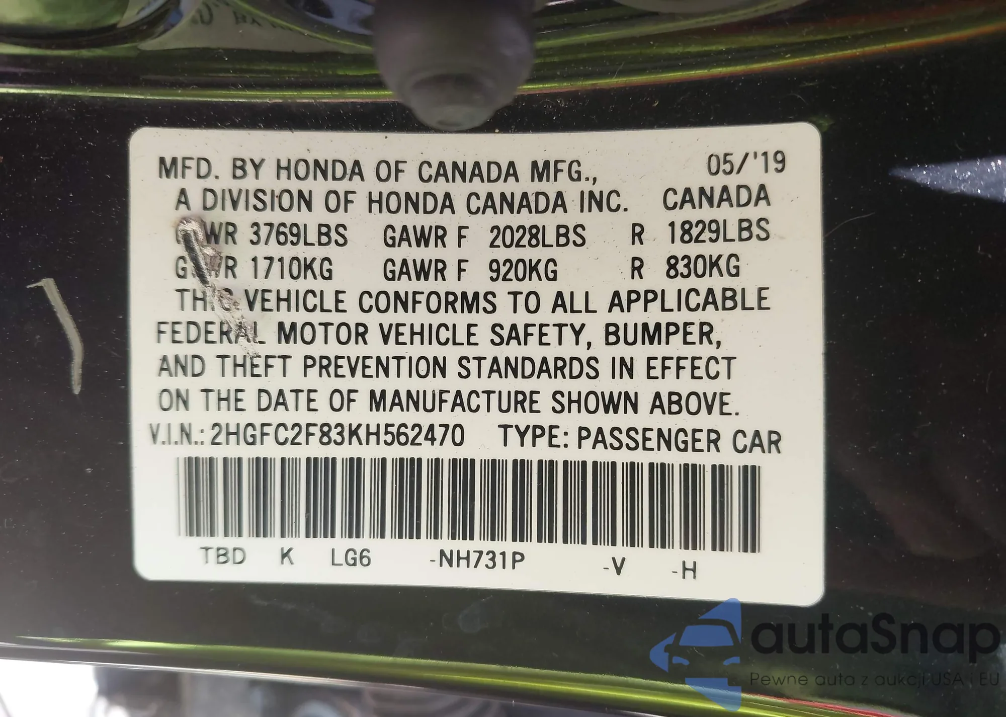 • VIN 1HGCV3F94NA020759