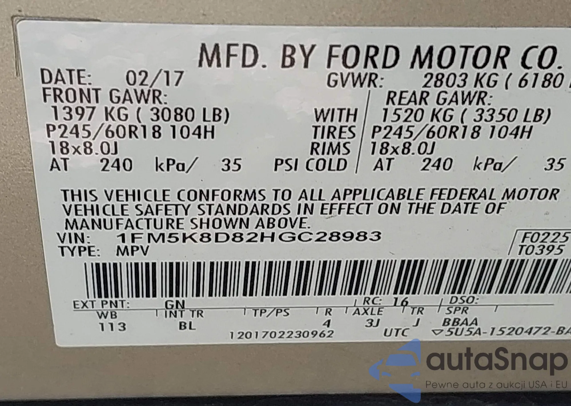 • VIN 1FM5K8D82HGC28983