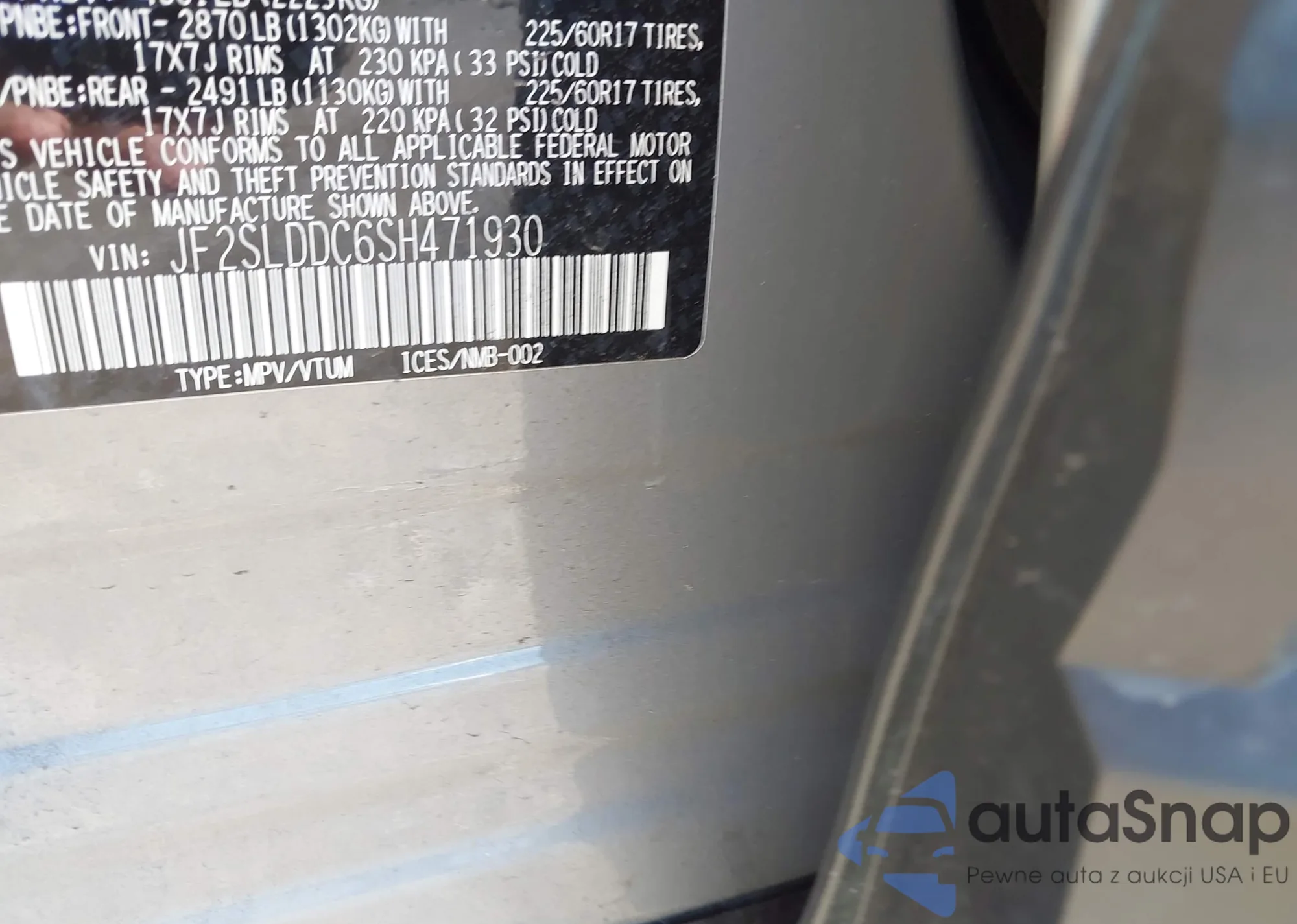 LOT: 43114799 VIN: JF2SLDDC6SH471930