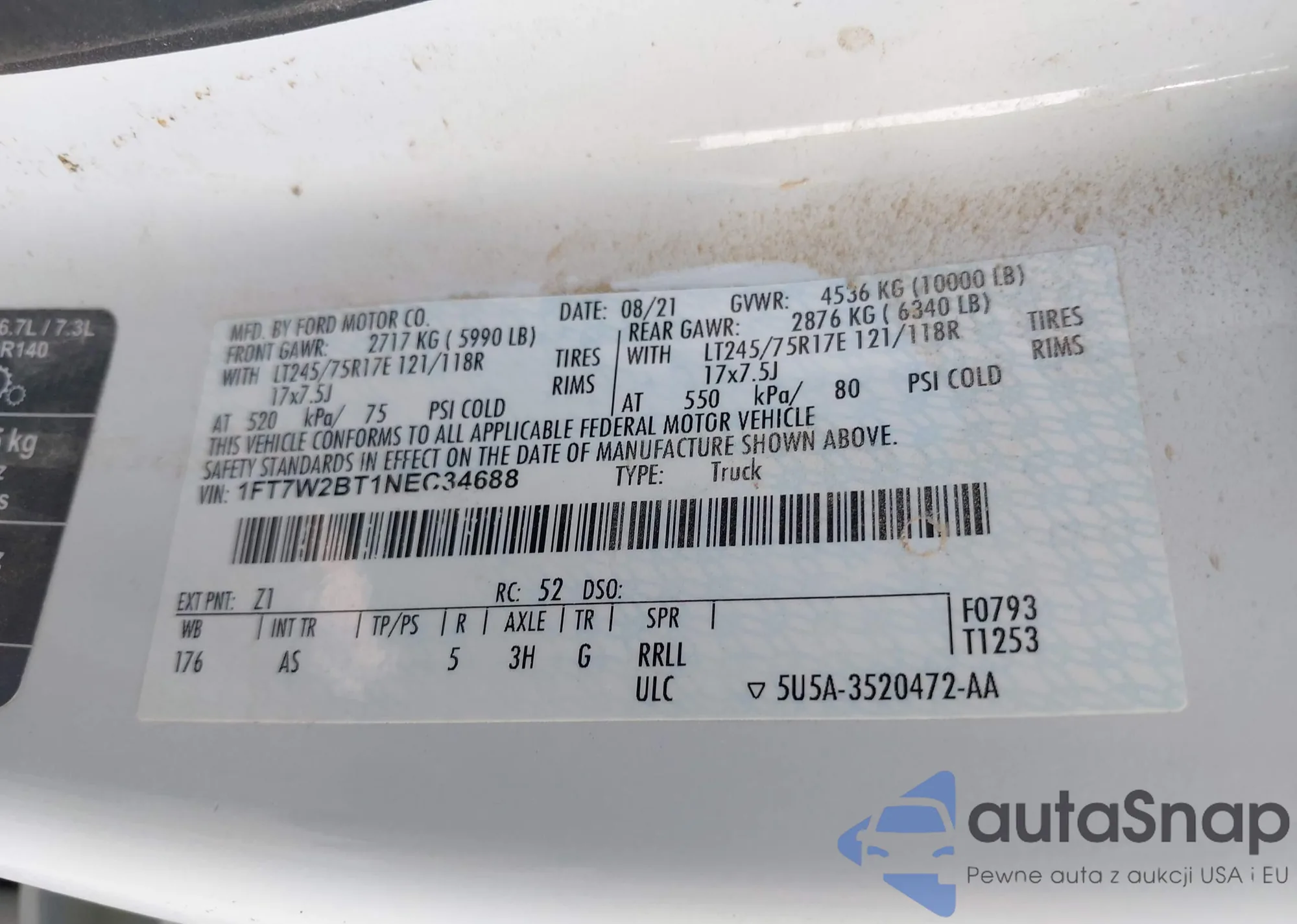 • VIN 1FT7W2BT1NEC34688
