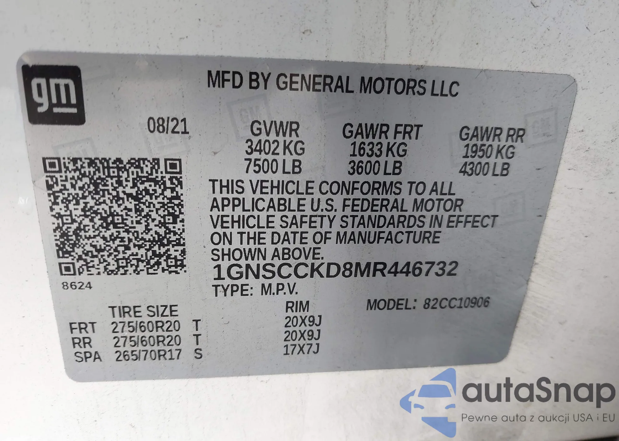 • VIN 1GNSCCKD8MR446732