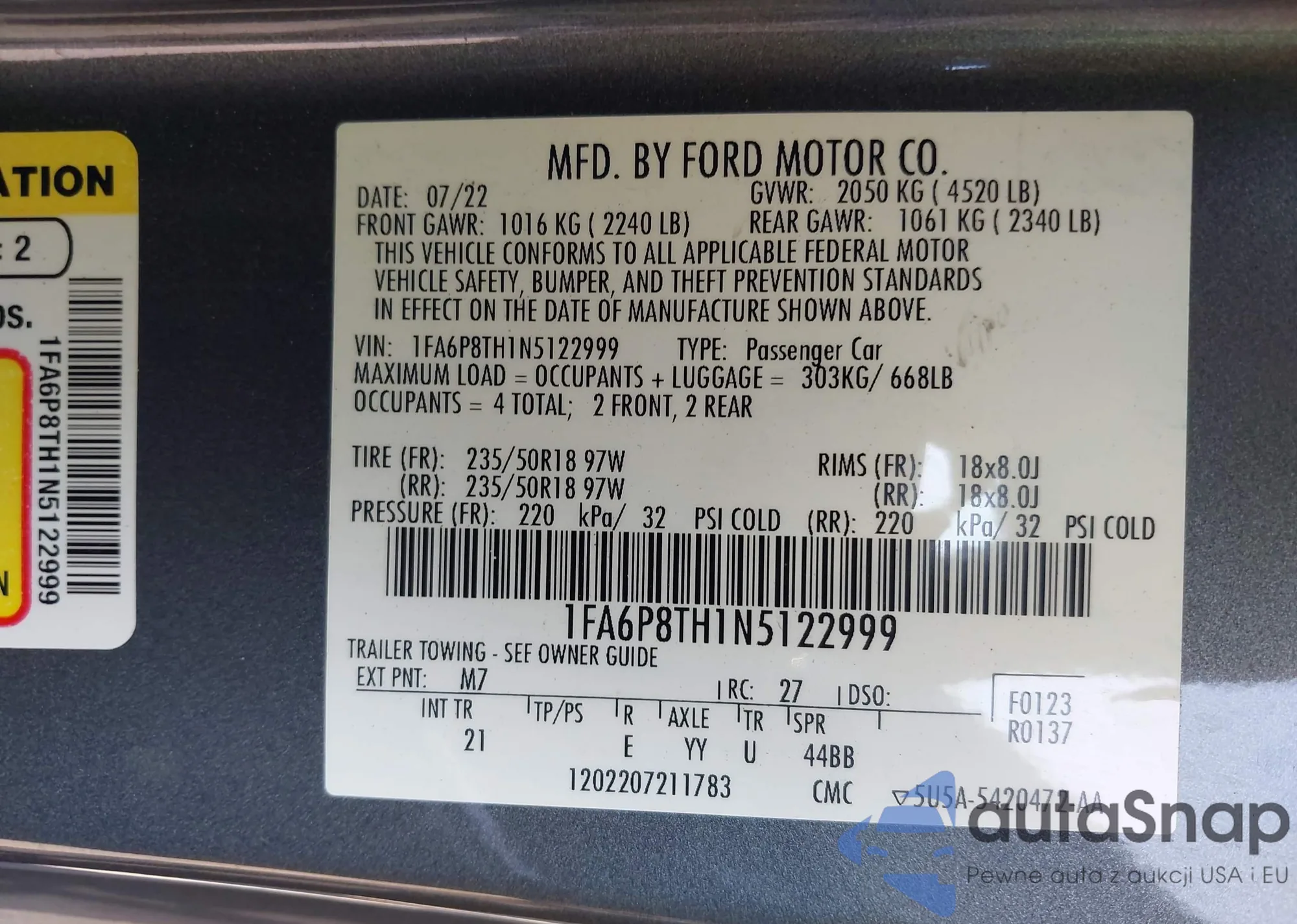 • VIN 1FA6P8TH1N5122999