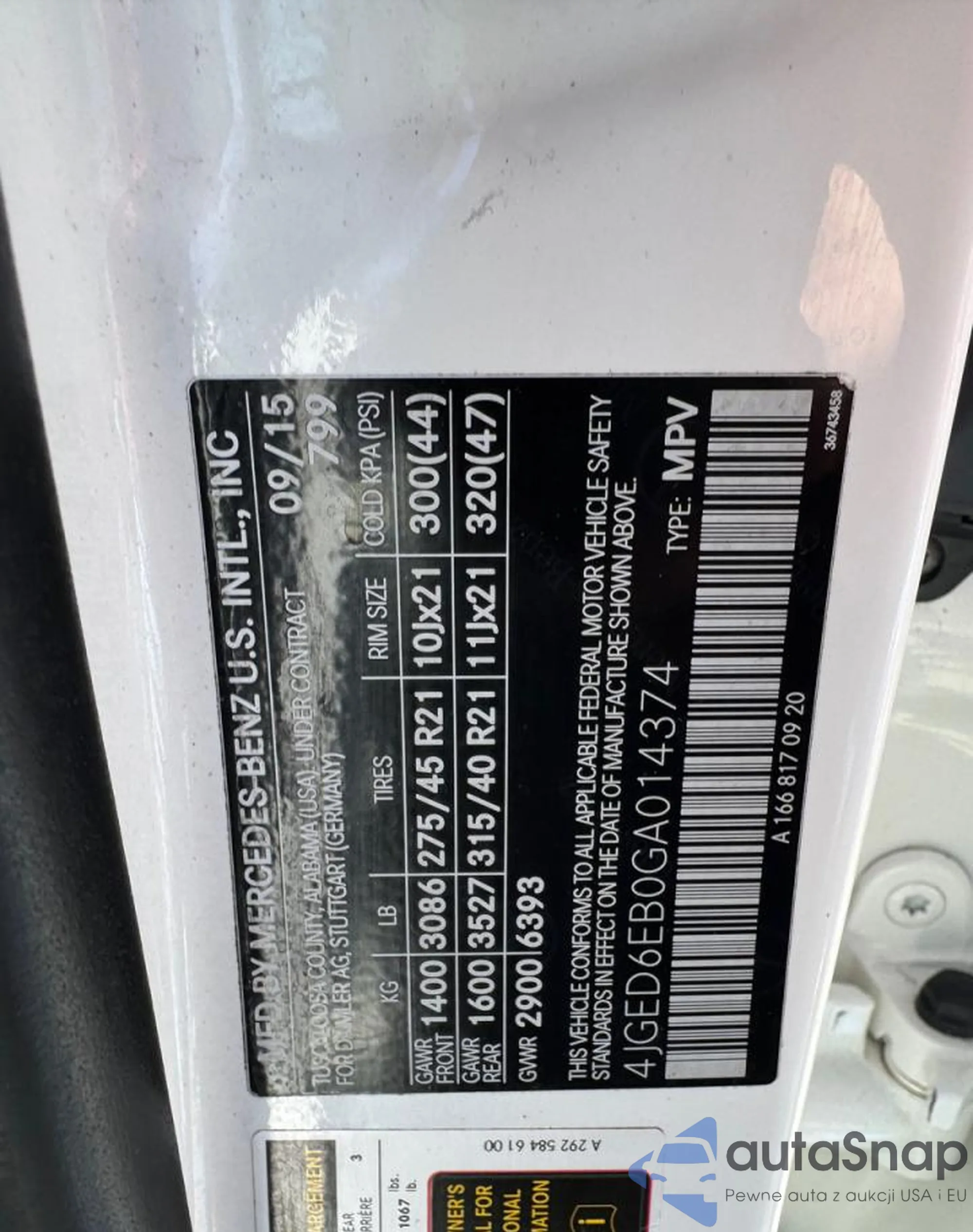 • VIN 4JGED6EB0GA014374