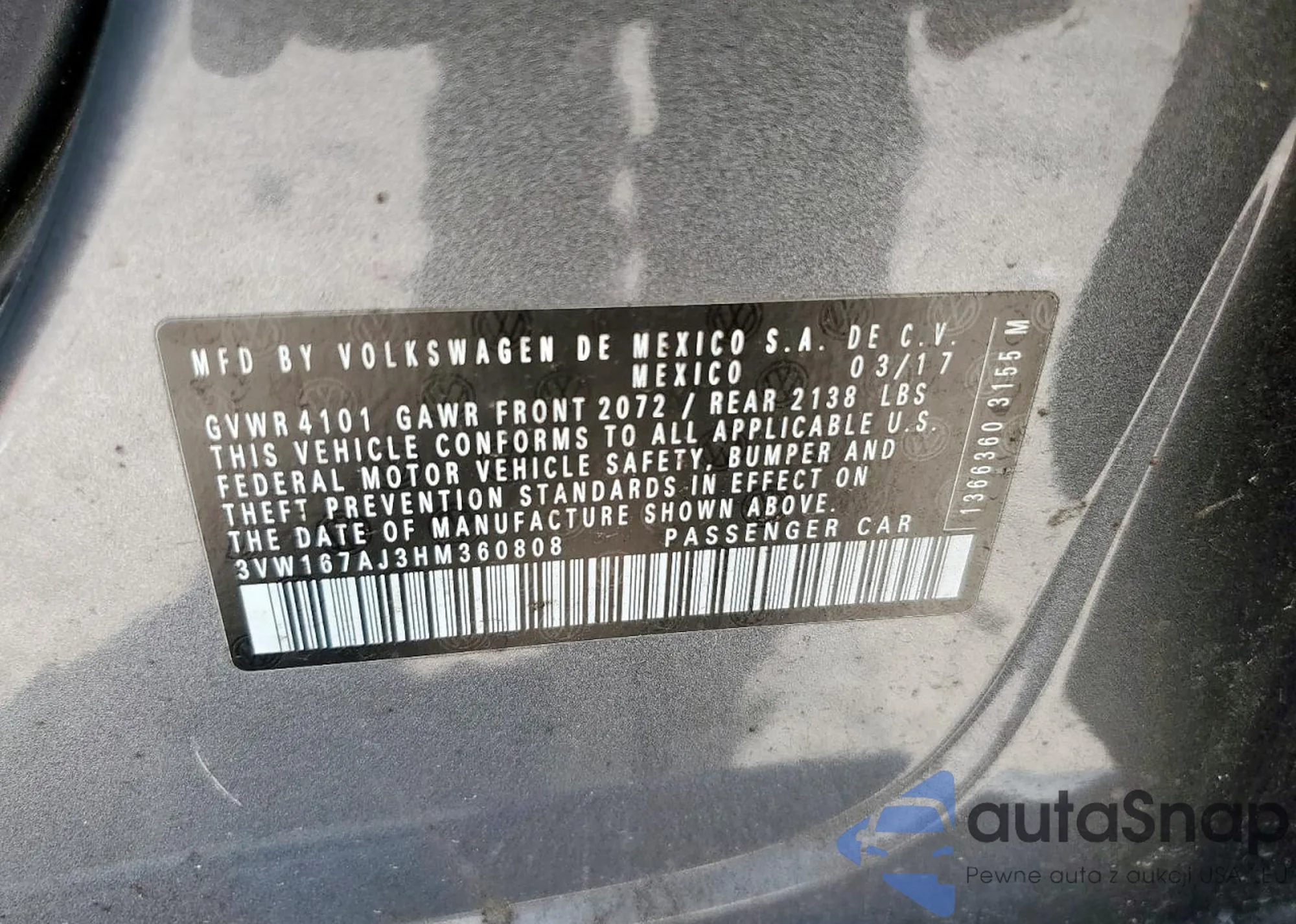 LOT: 68675595 VIN: 1V2TR2CA1MC545520