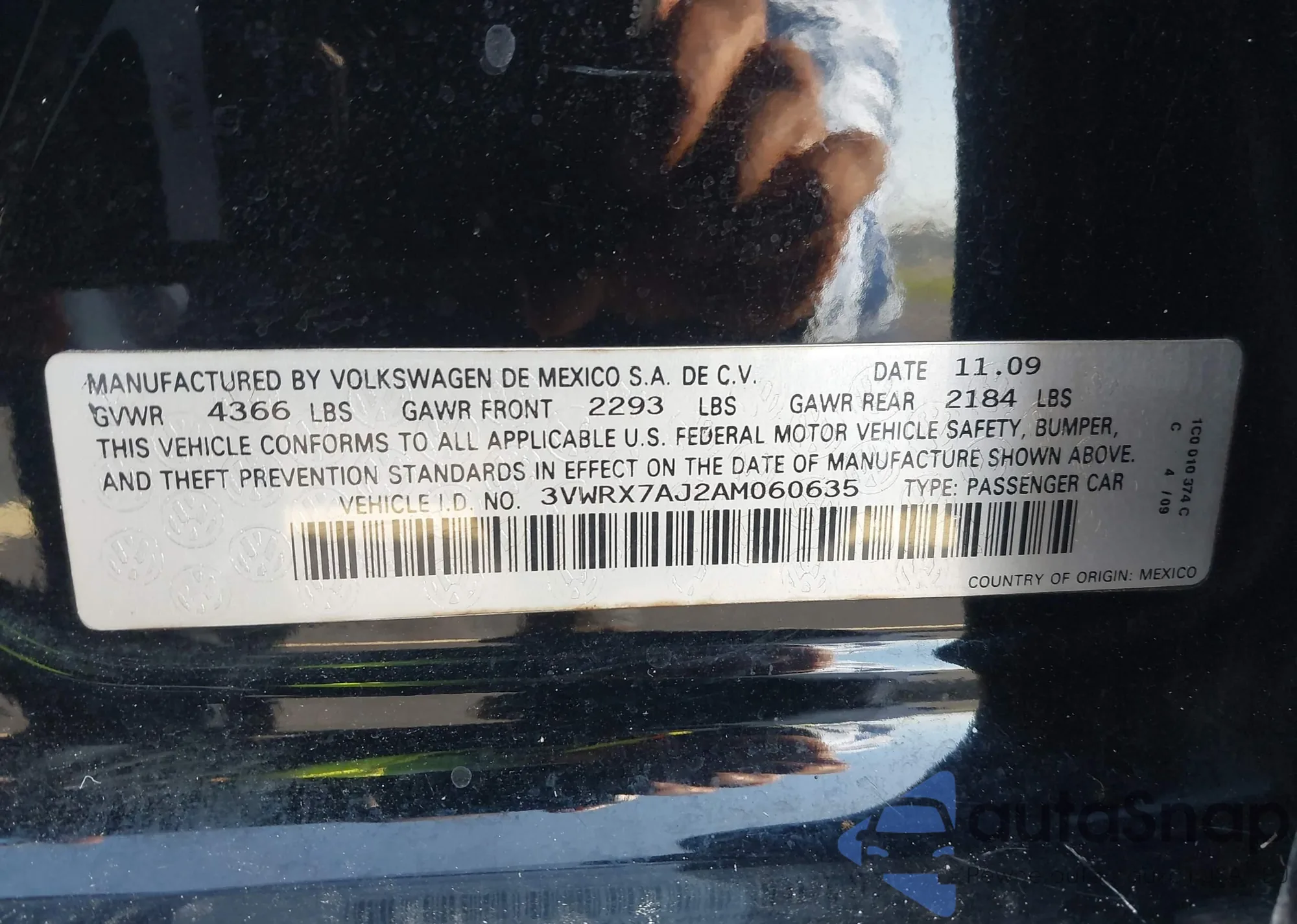 • VIN 3VWRX7AJ2AM060635