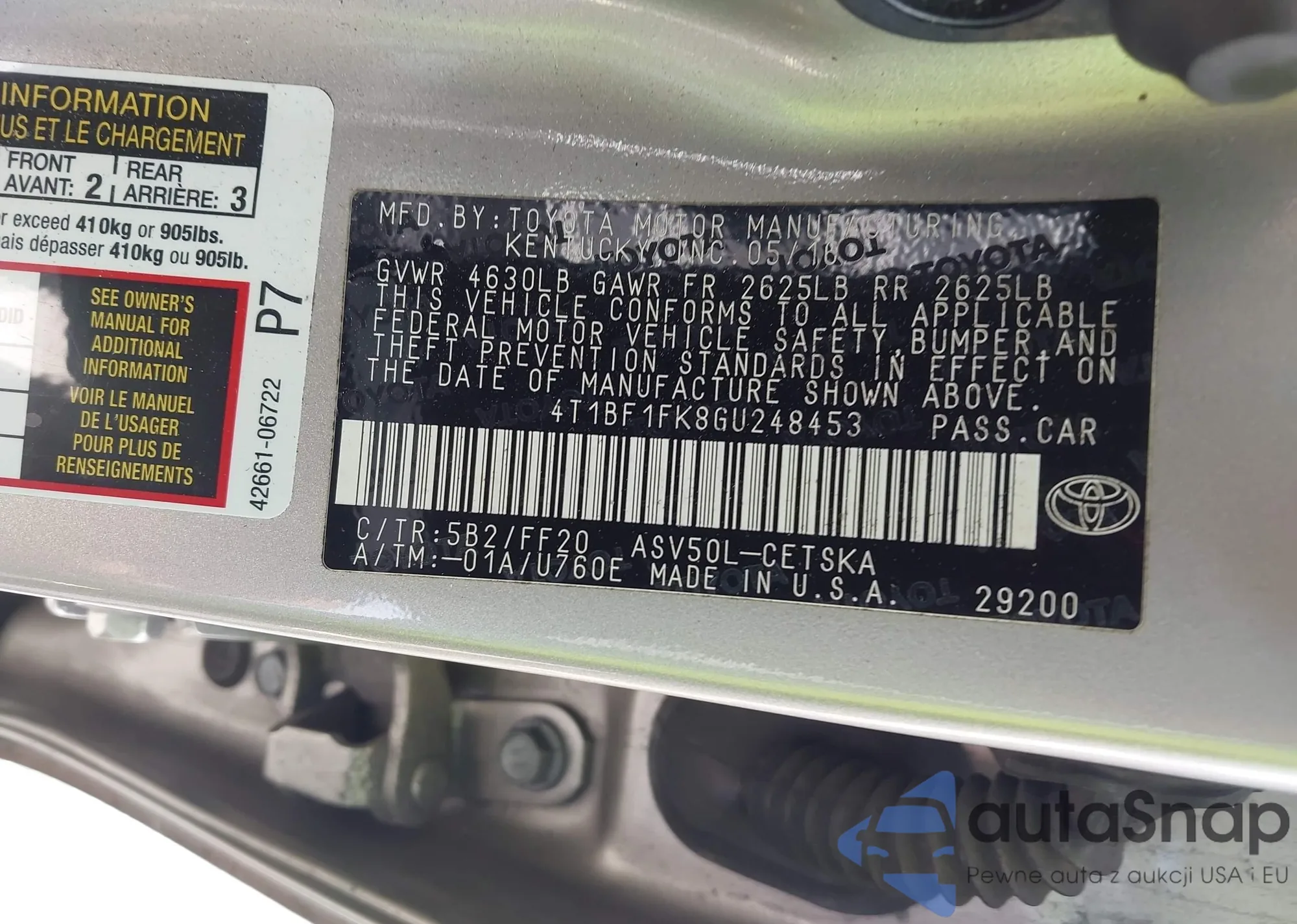 • VIN 4T1BF1FK8GU248453