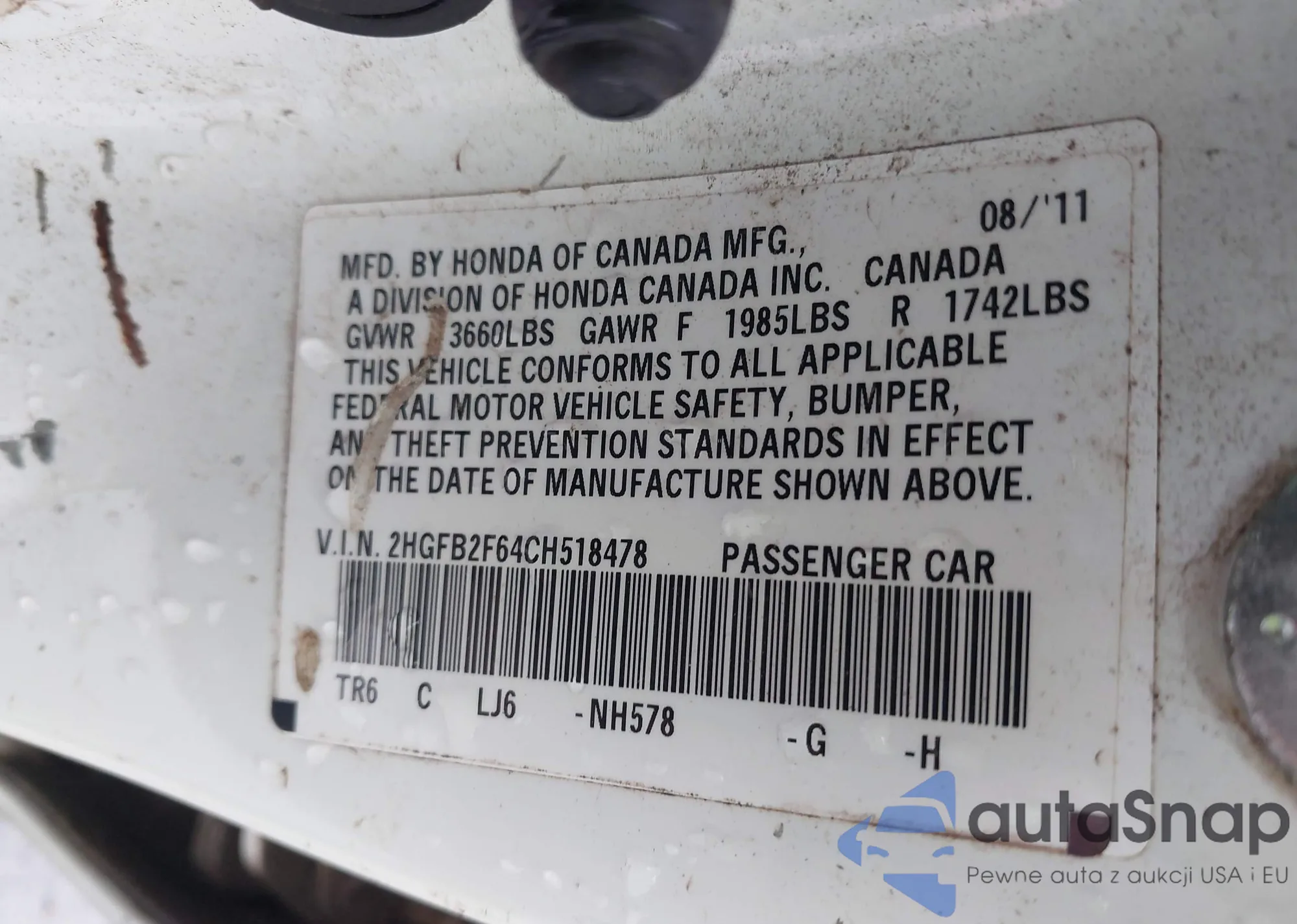 • VIN 2HGFB2F64CH518478