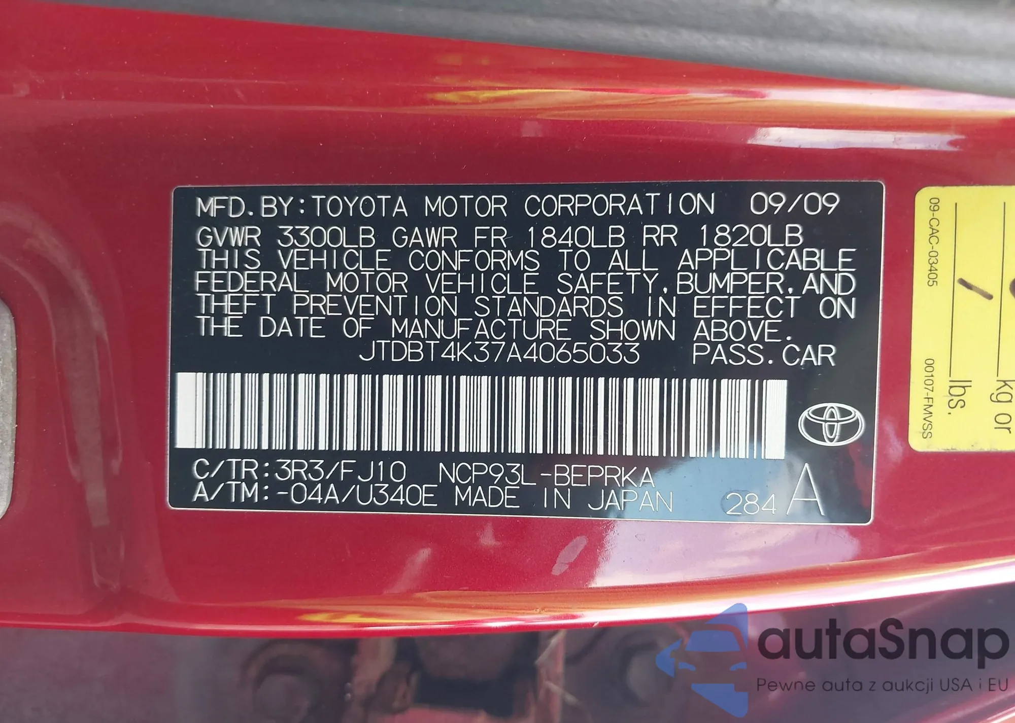 LOT: 43081231 VIN: JTDBT4K37A4065033