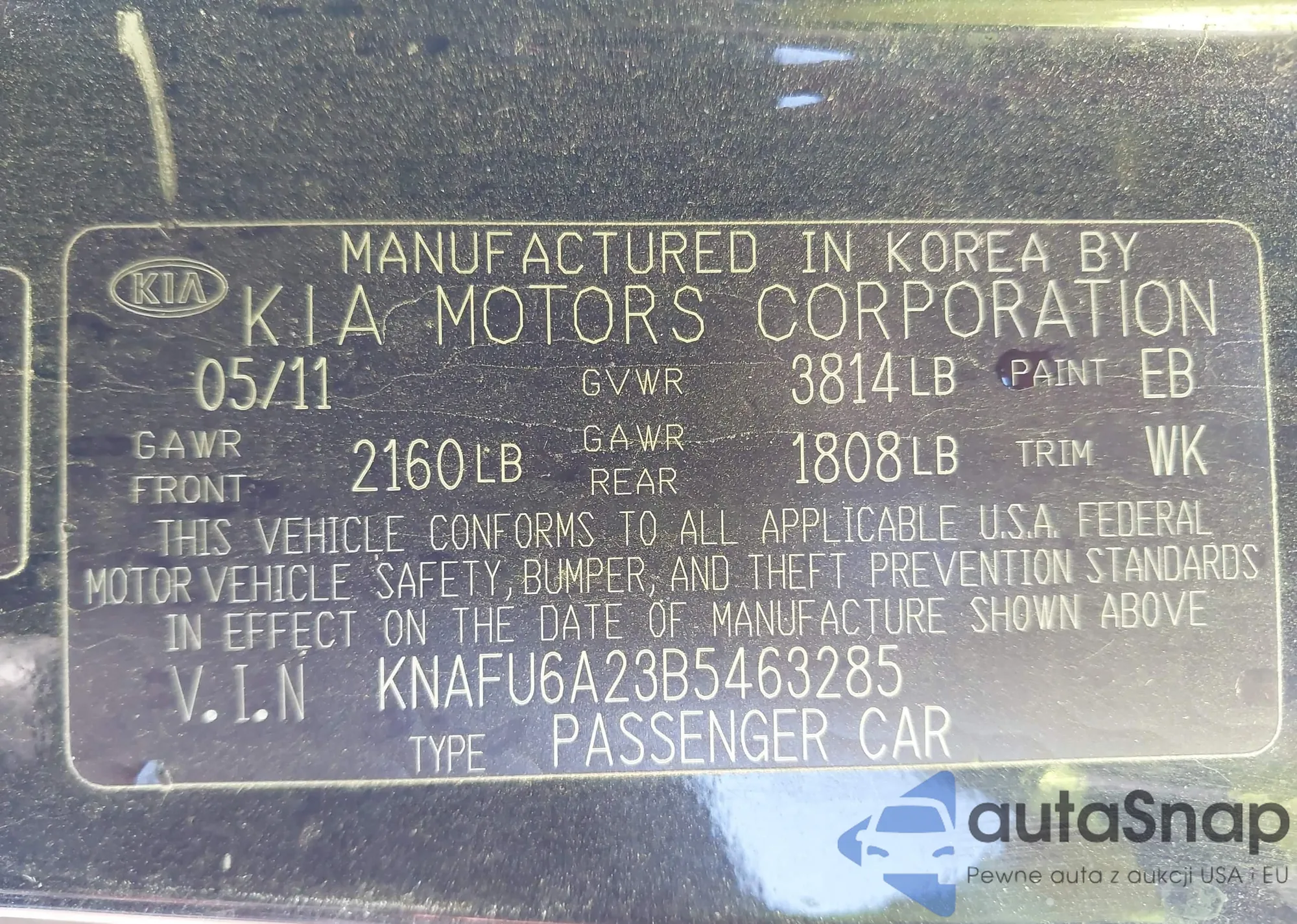 • VIN KNAFU6A23B5463285
