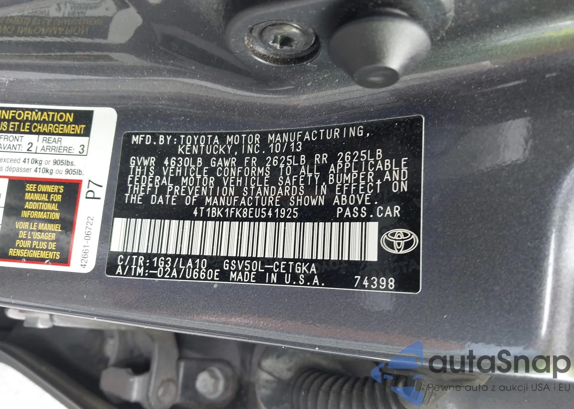 • VIN 4T1BK1FK8EU541925