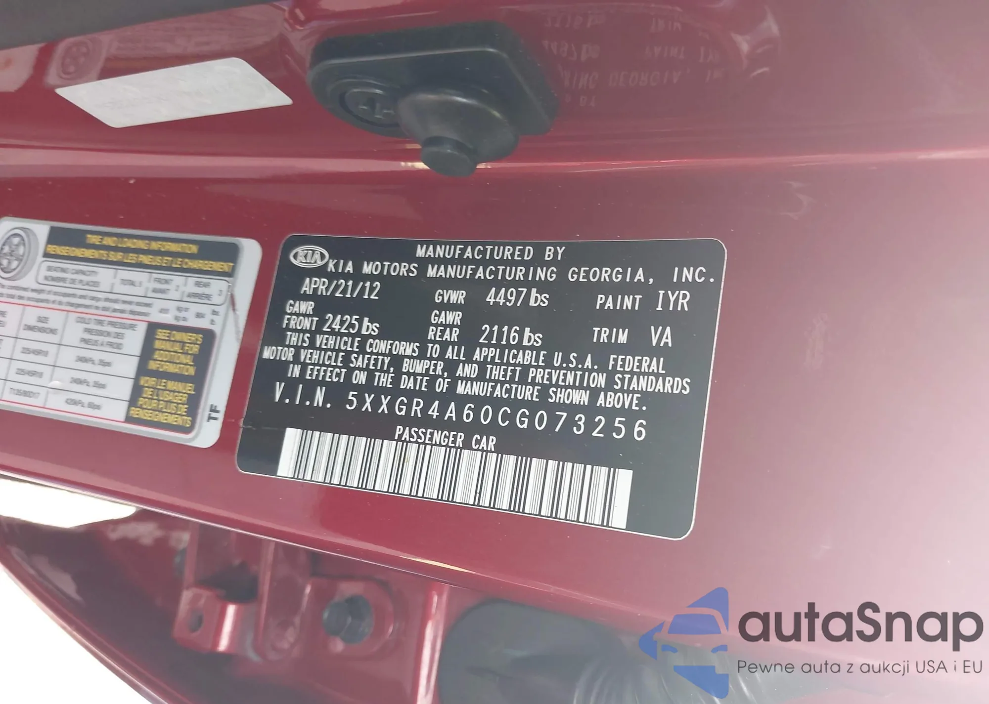 • VIN 5XXGR4A60CG073256