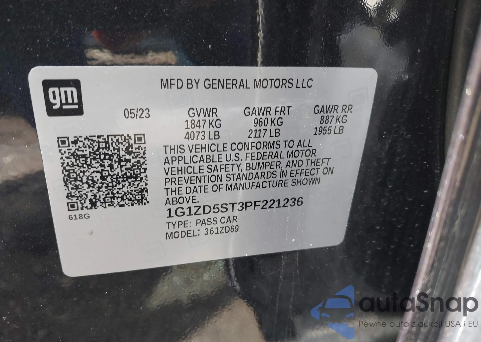 LOT: 43150904 VIN: 1G1ZD5ST3PF221236