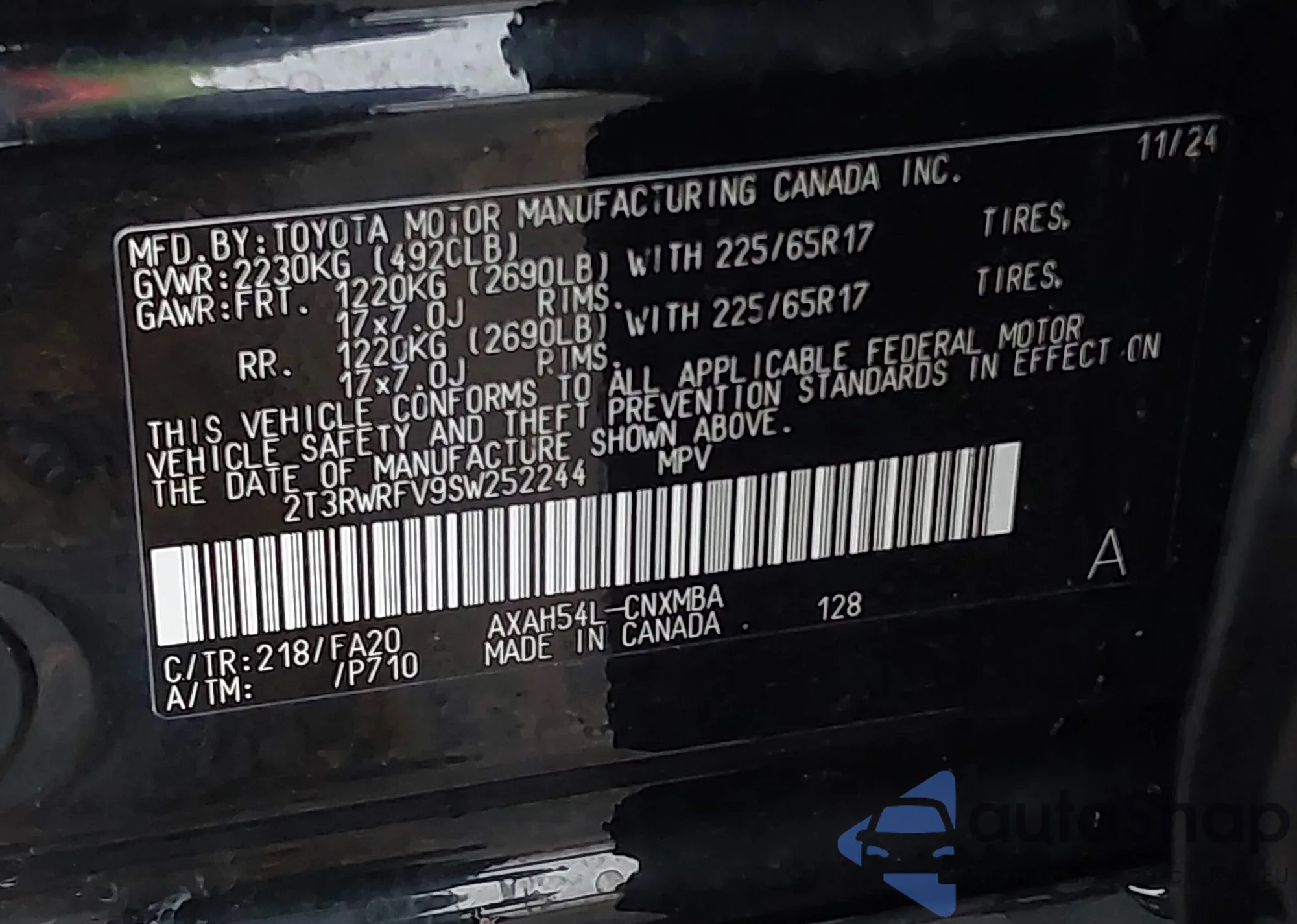 • VIN 2T3RWRFV9SW252244
