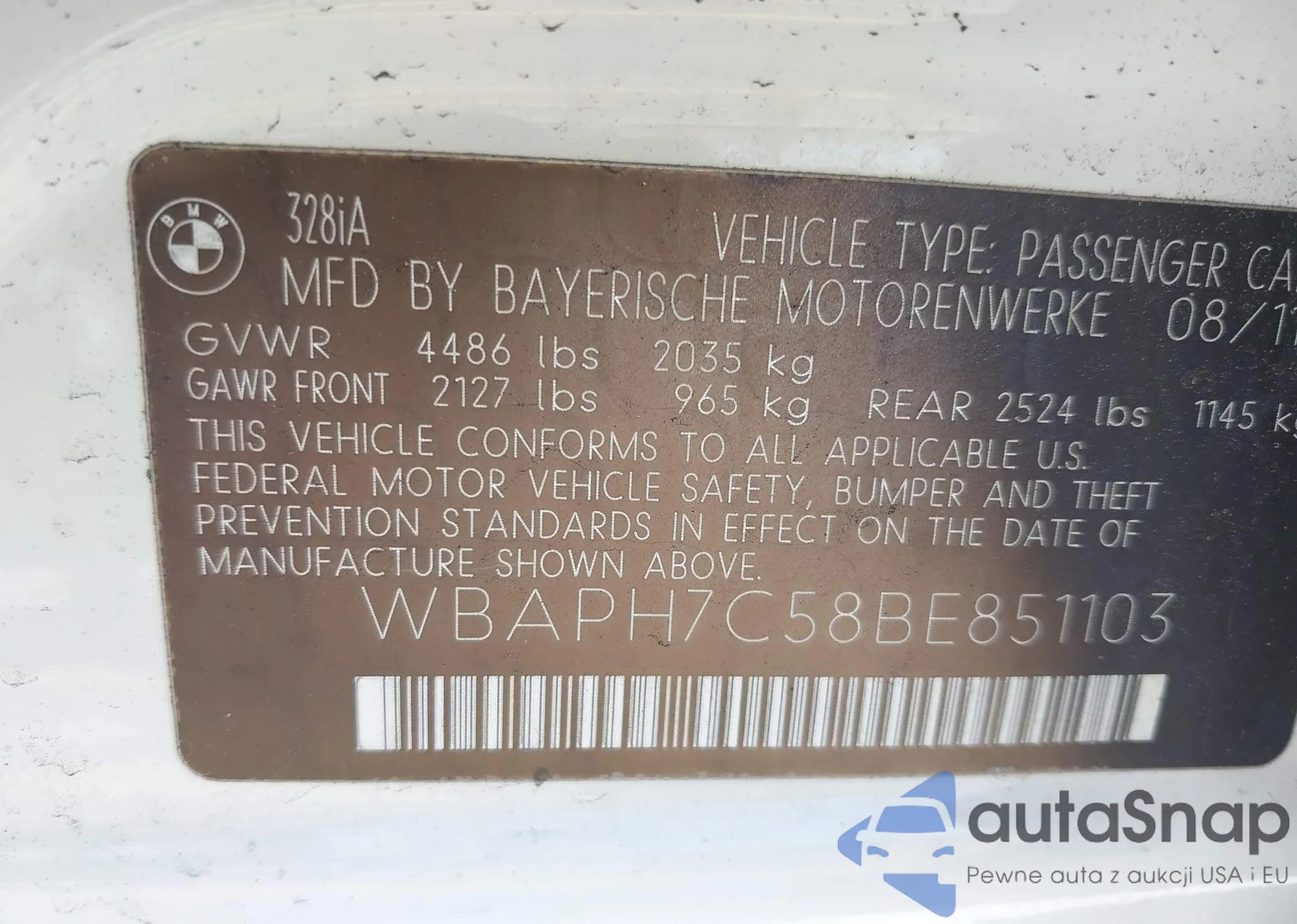 LOT: 43212345 VIN: 3VWDX7AJ0CM301234