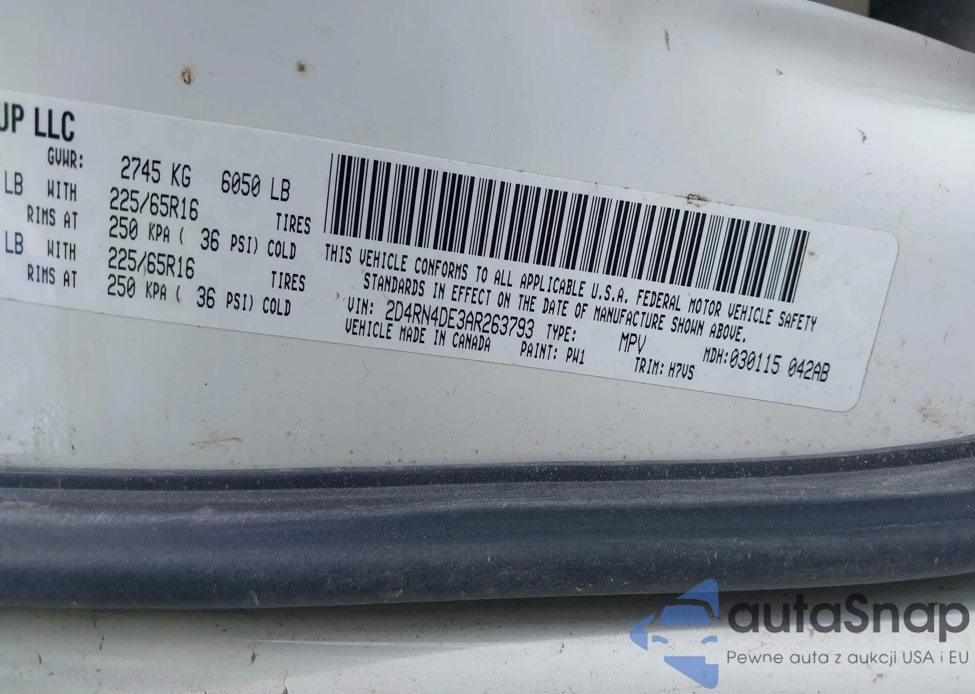 • VIN 2D4RN4DE3AR263793