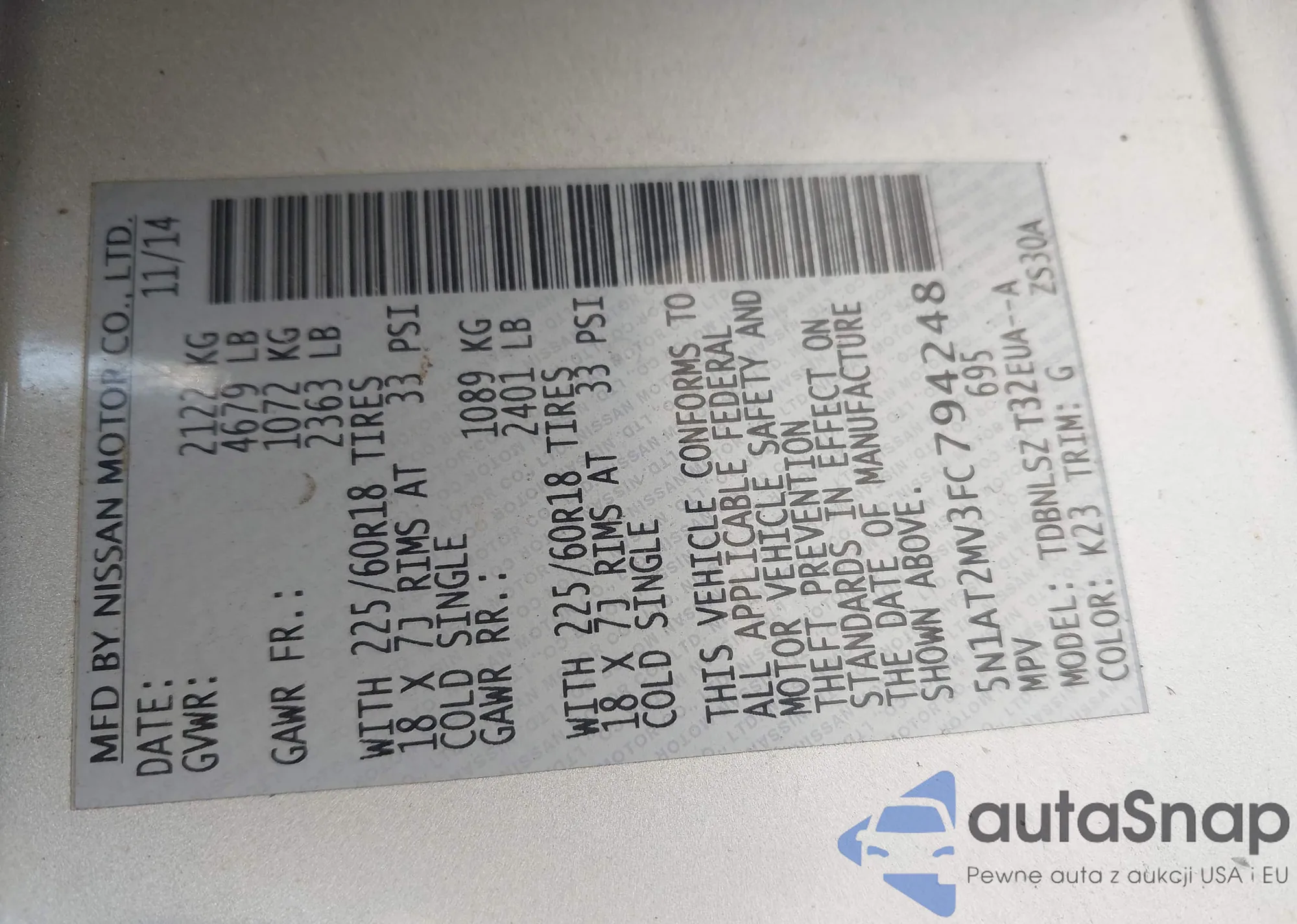• VIN 3C4NJDFB4NT207018