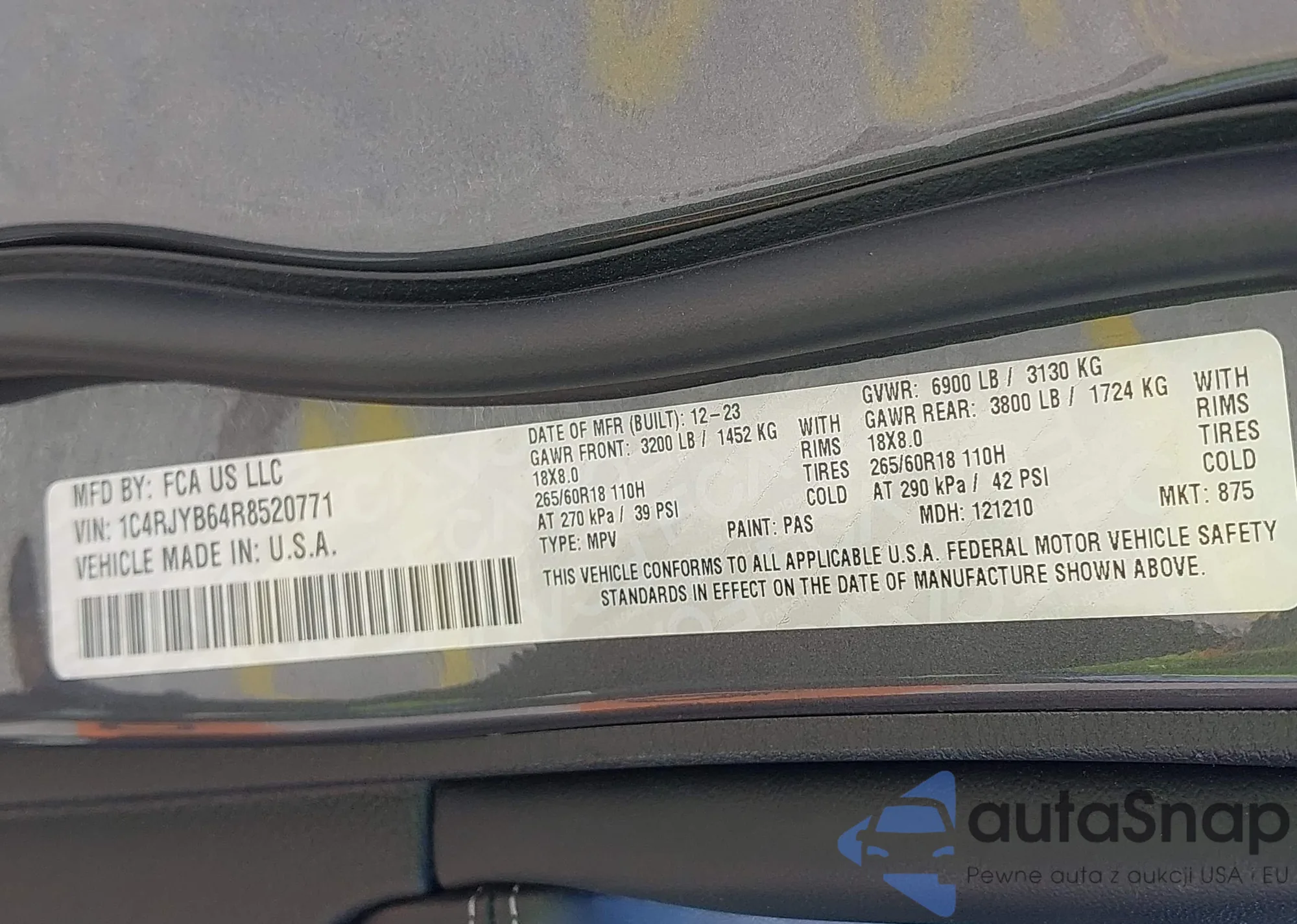 • VIN 1C4RJYB64R8520771
