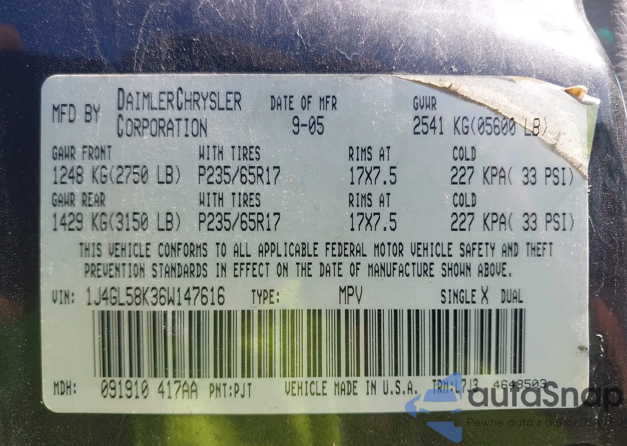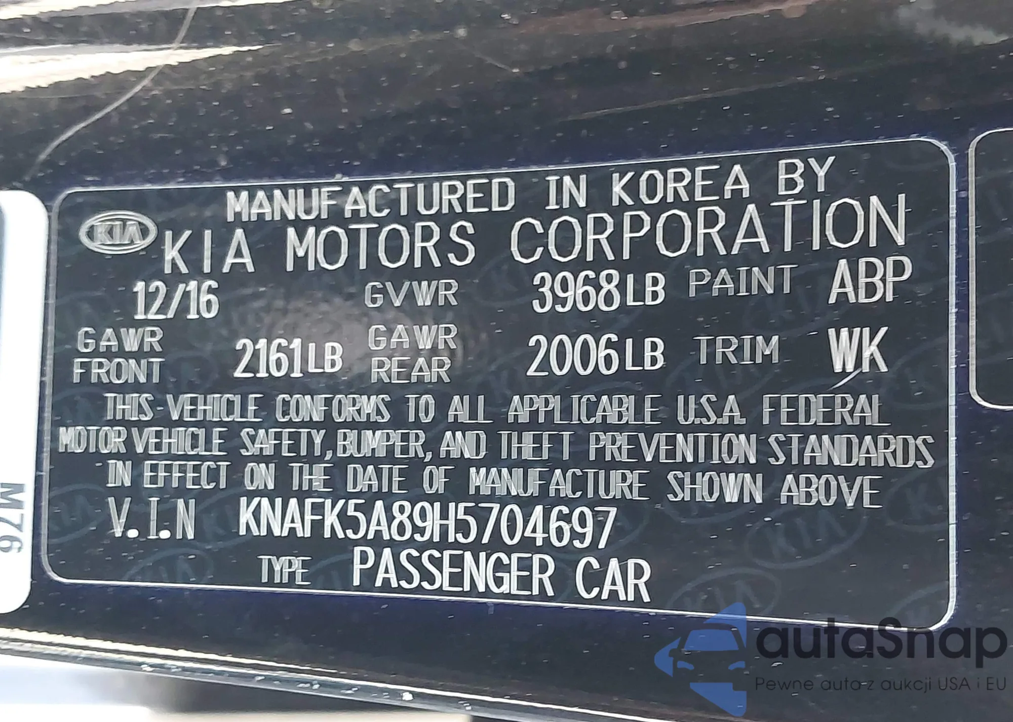 • VIN KNAFK5A89H5704697