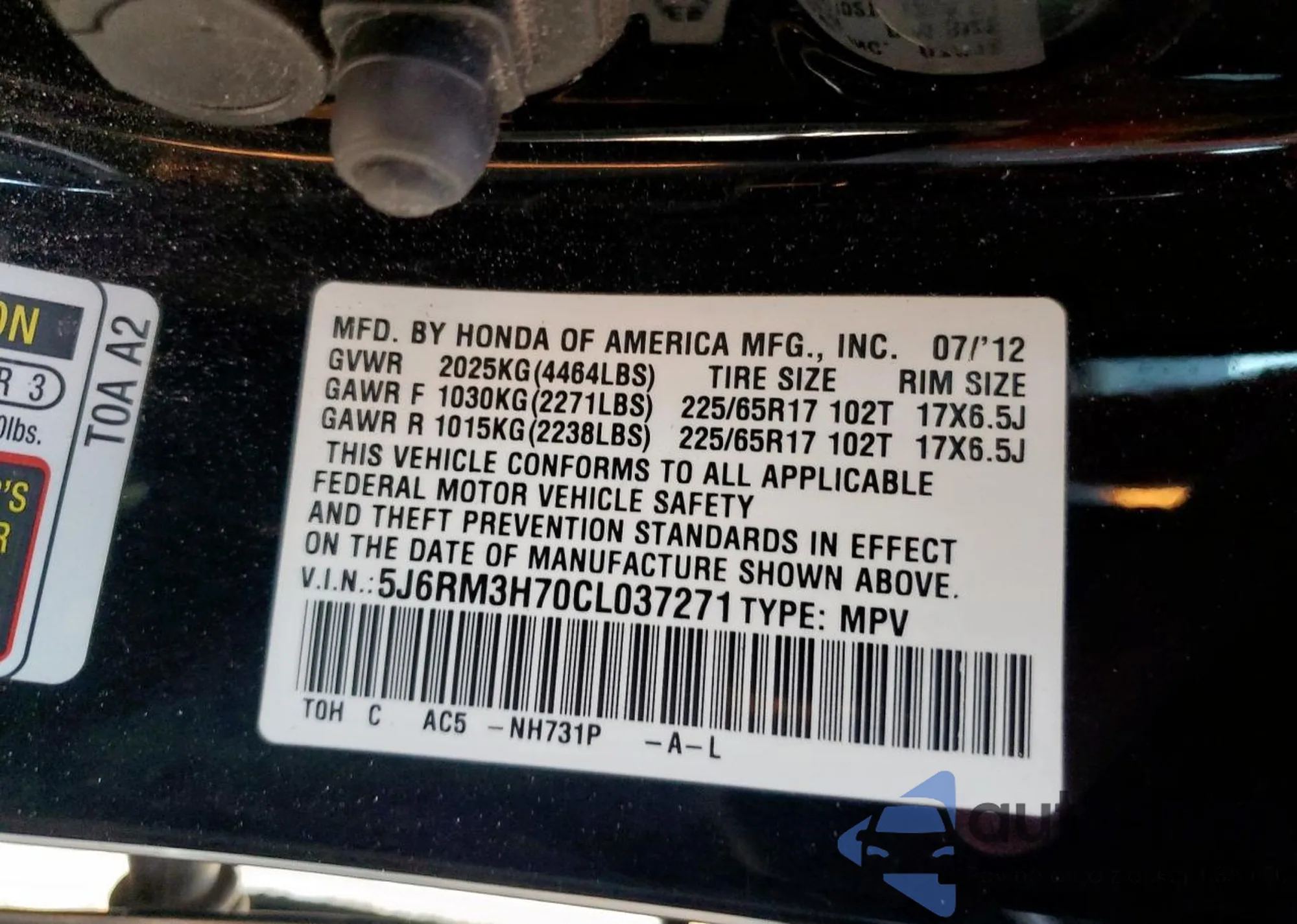 • VIN 2HKRW2H8XHH627928