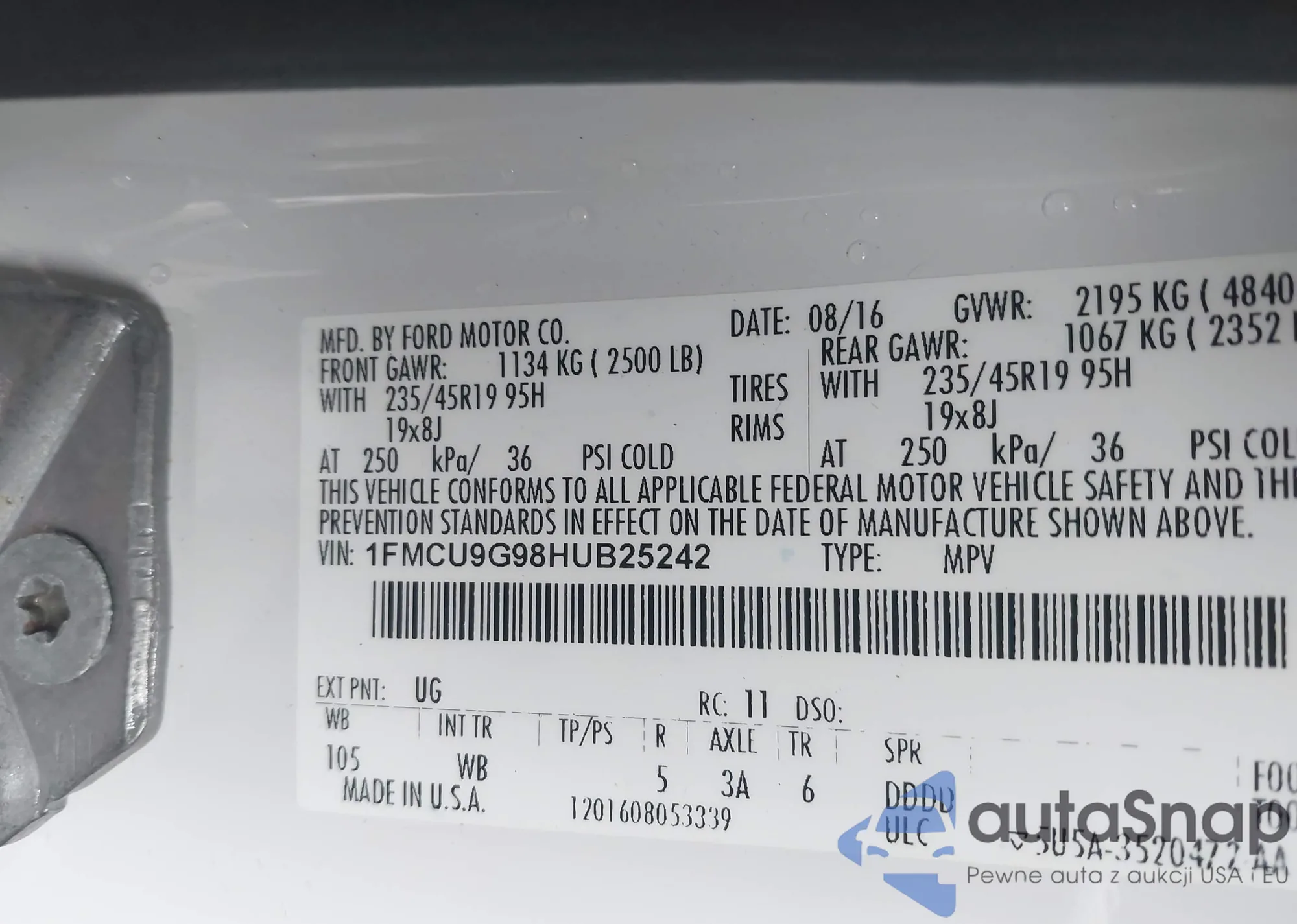 LOT: 42622333 VIN: 1FMCU0D71BKC58393