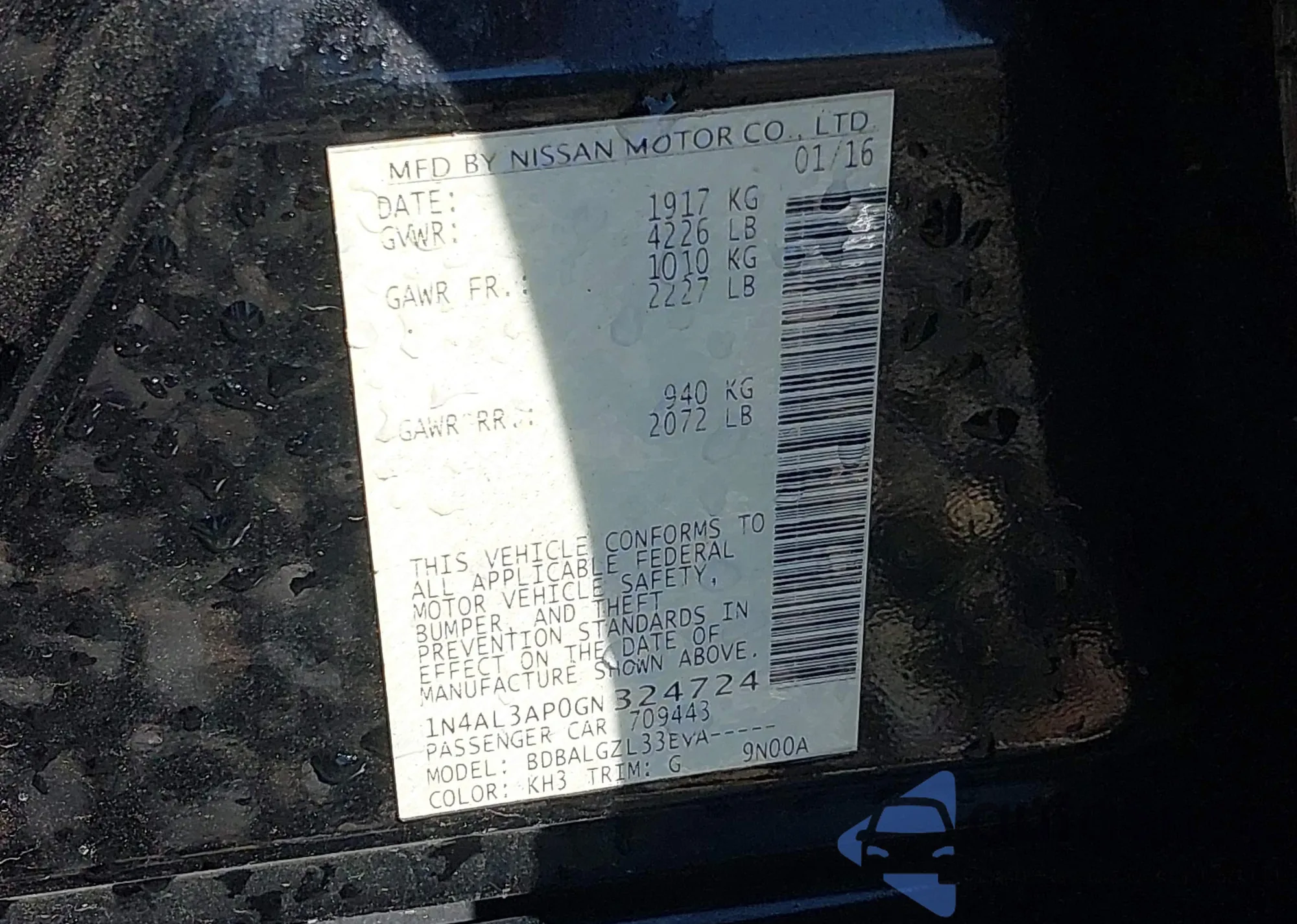 • VIN 1N4AL3AP0GN324724