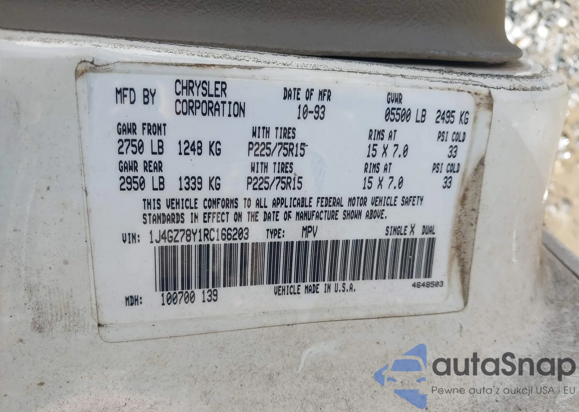 • VIN 1J4GZ78Y1RC166203