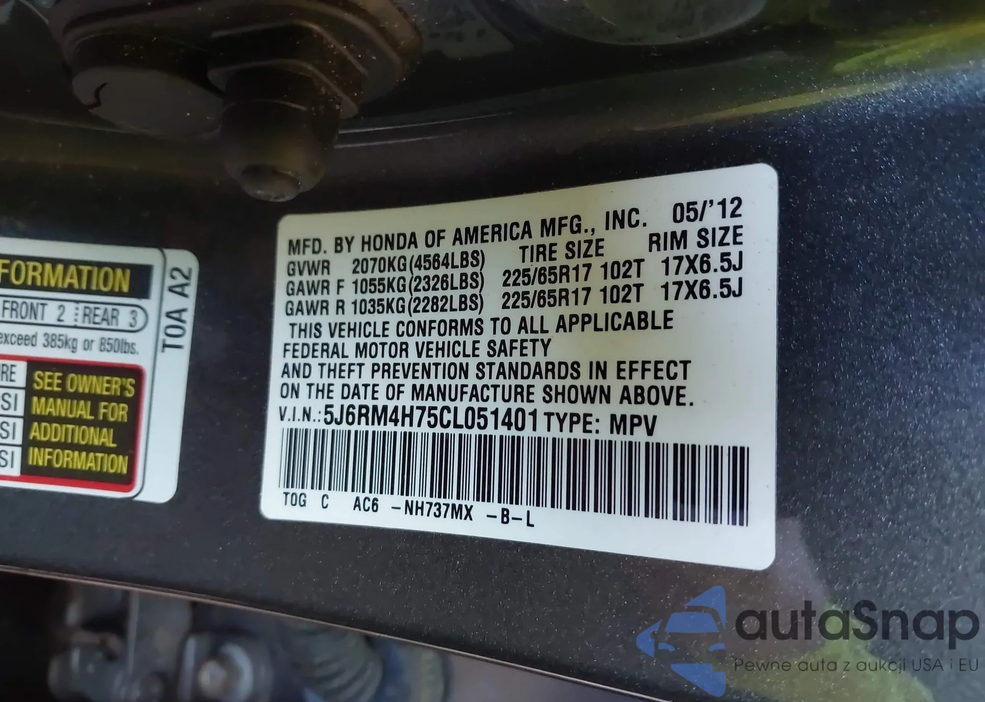 • VIN 5J6RE4H52BL071826