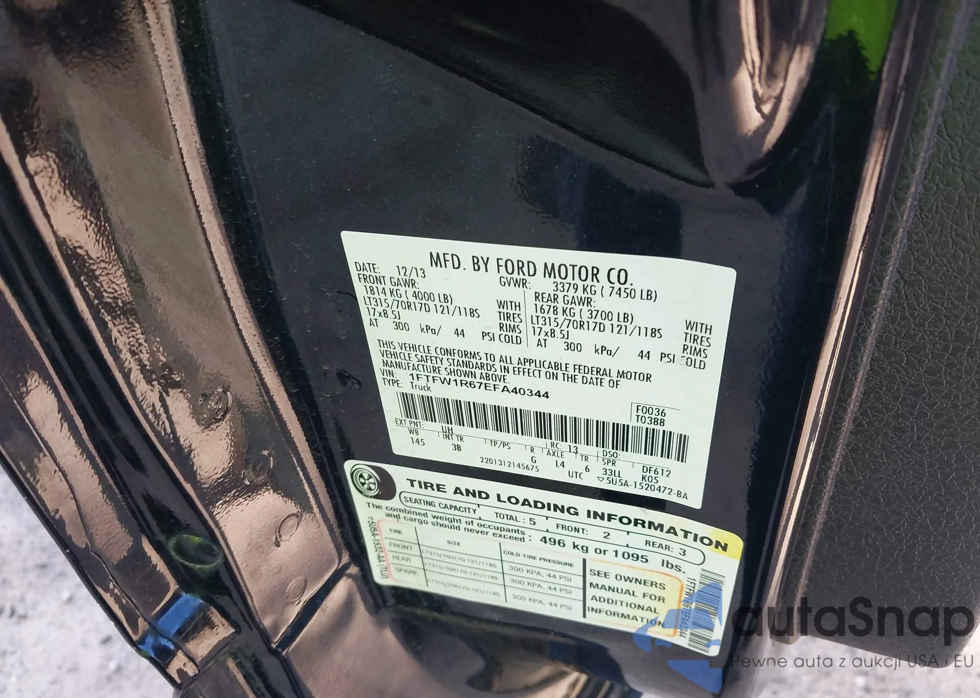 • VIN 1FTFW1R67EFA40344