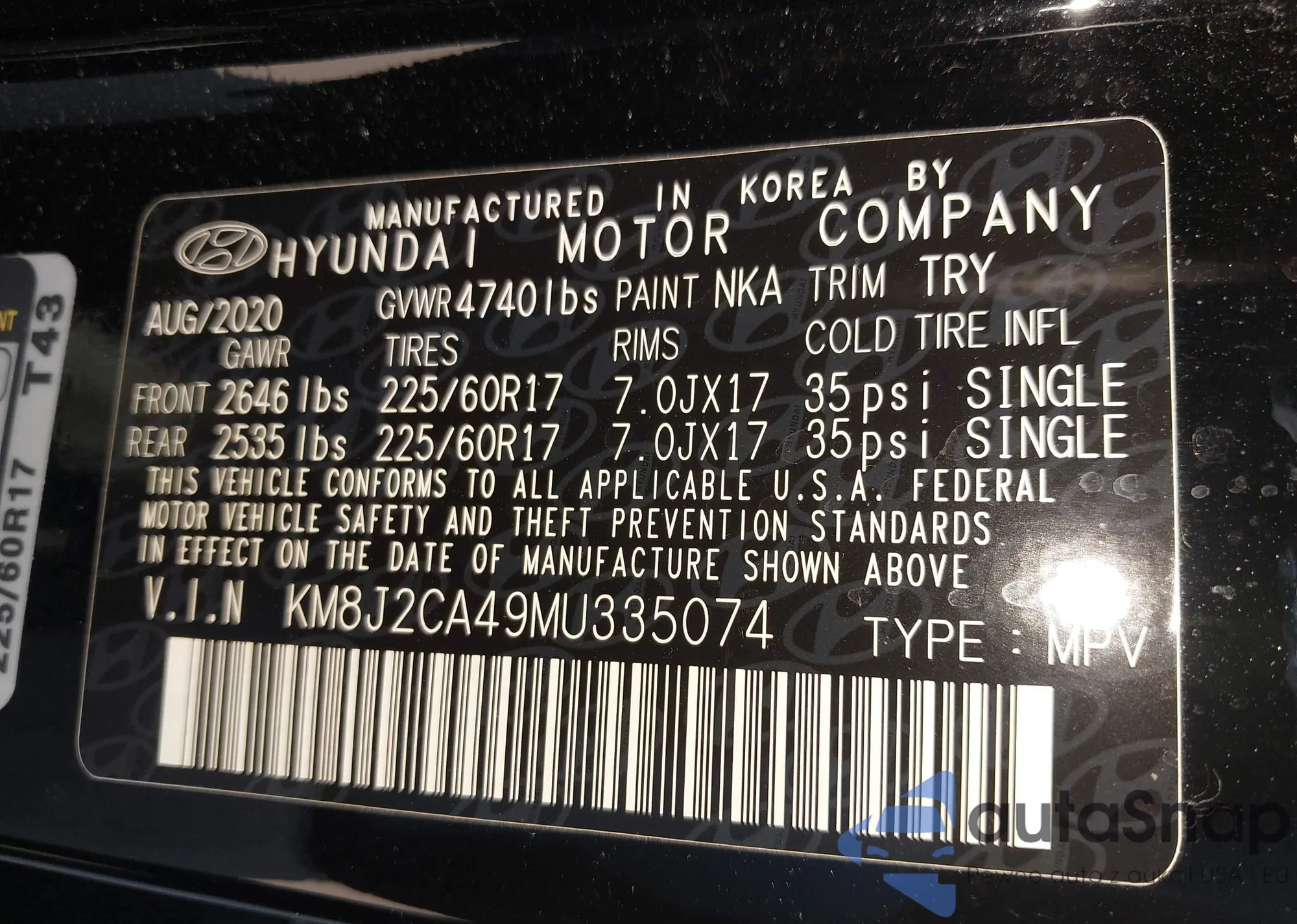 • VIN KM8J2CA49MU335074