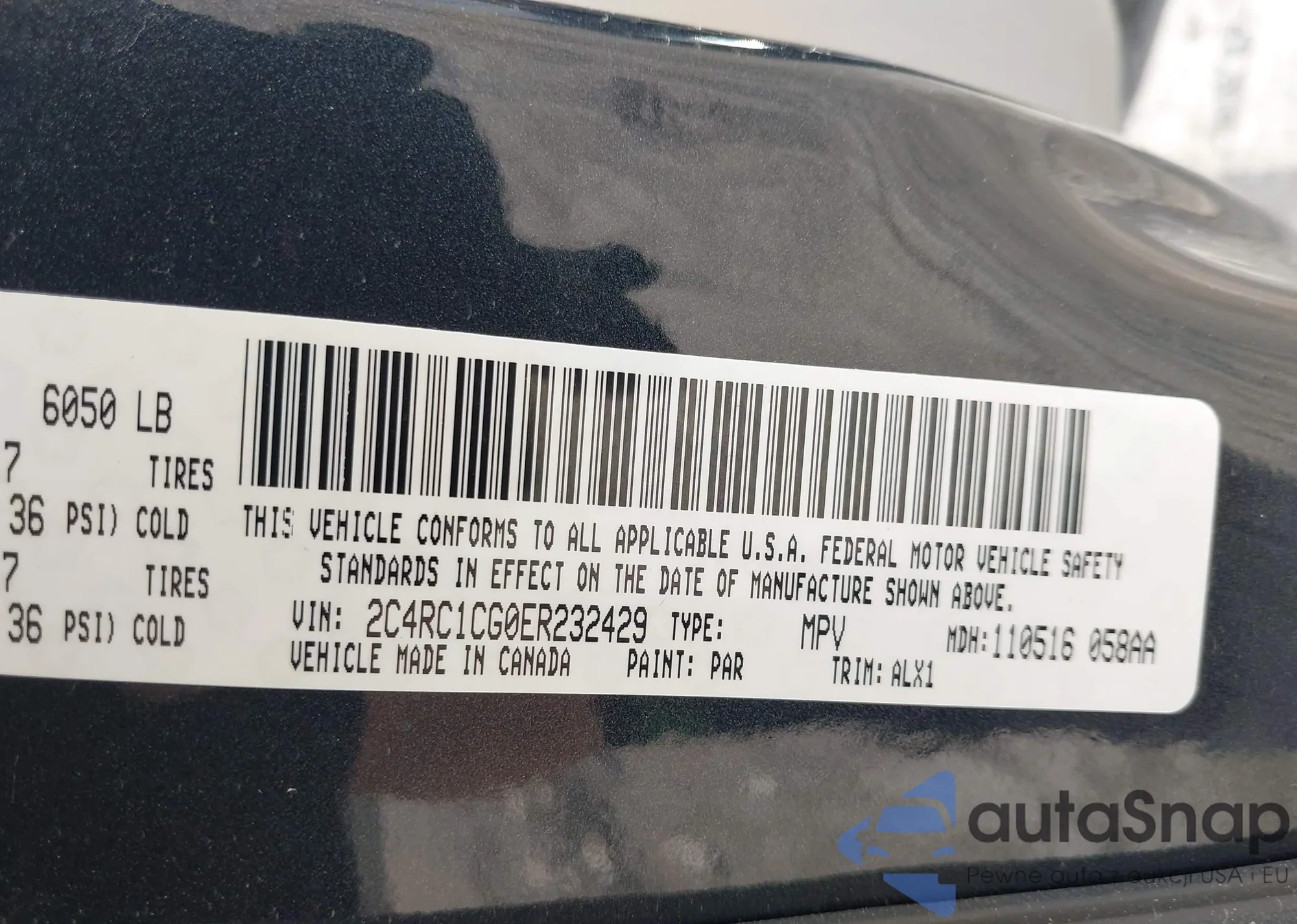 • VIN 2C4RC1CG0ER232429