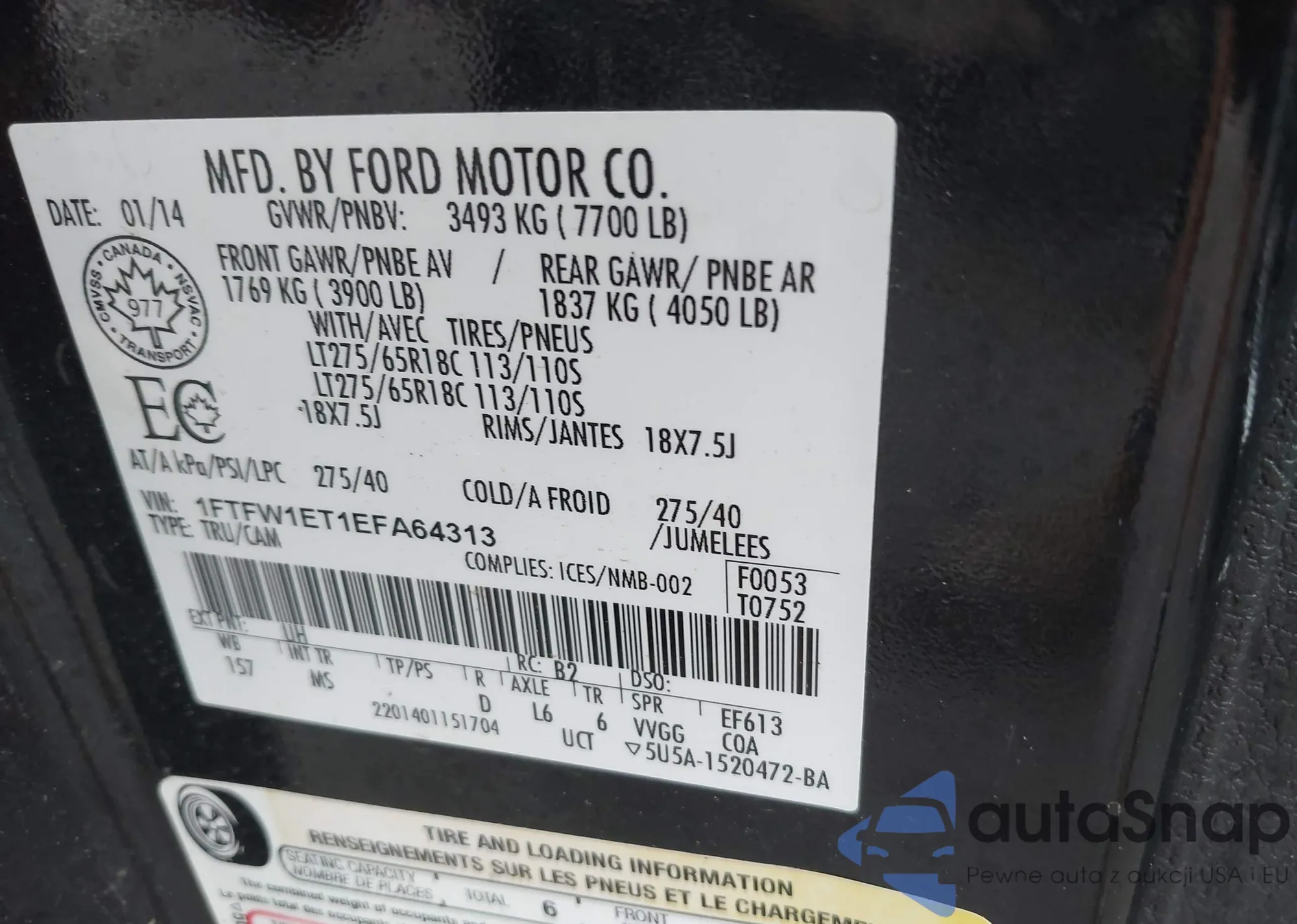 • VIN 1FTFW1ET1EFA64313