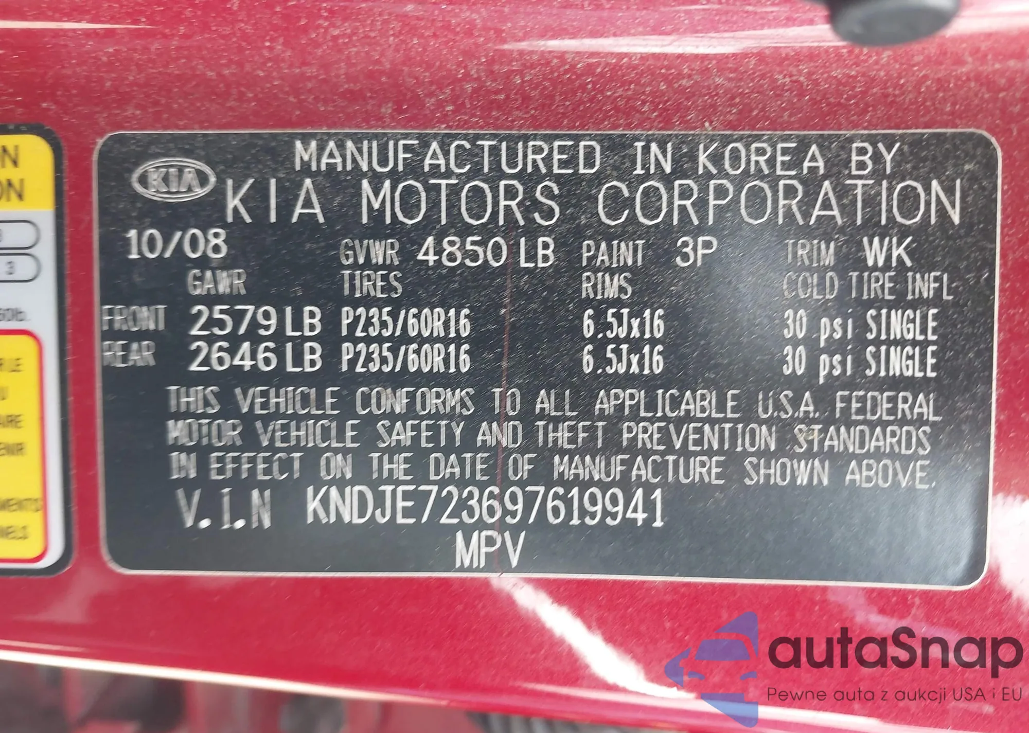 LOT: 43087915 VIN: KNDJE723697619941