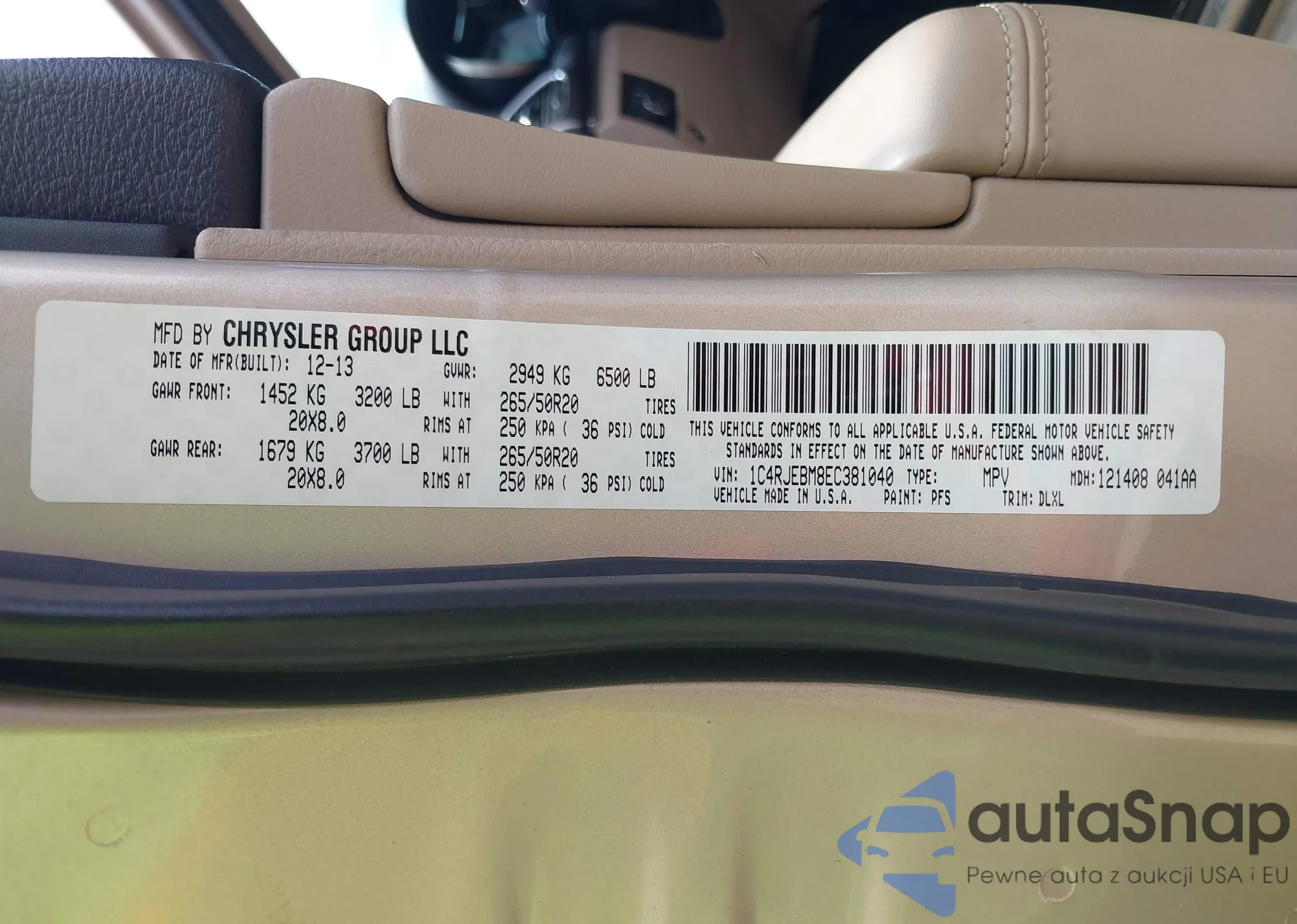LOT: 43134874 VIN: 1C4RJEBM8EC381040