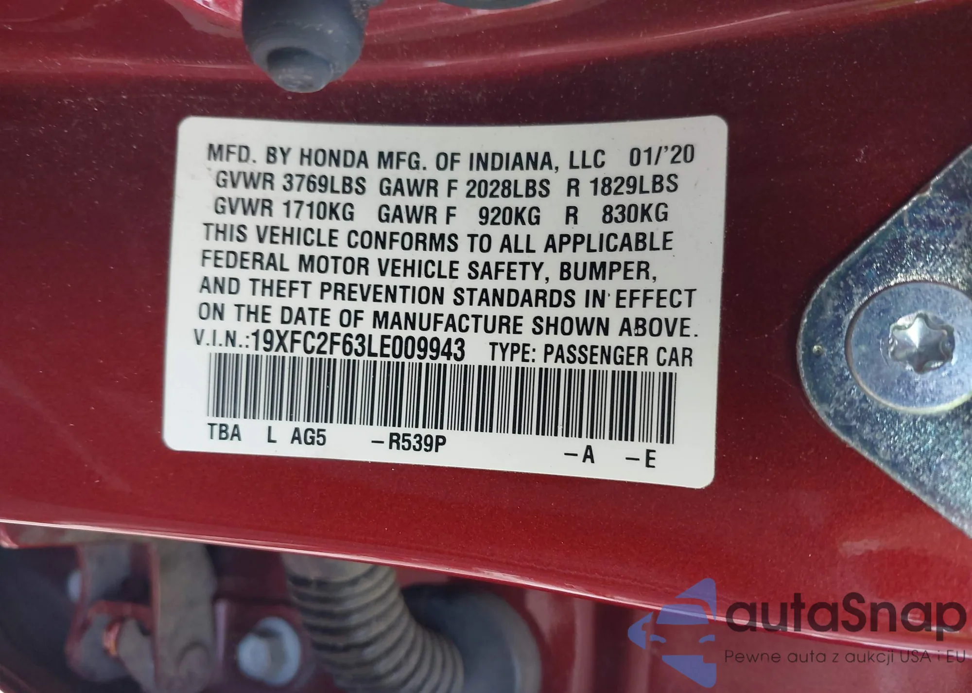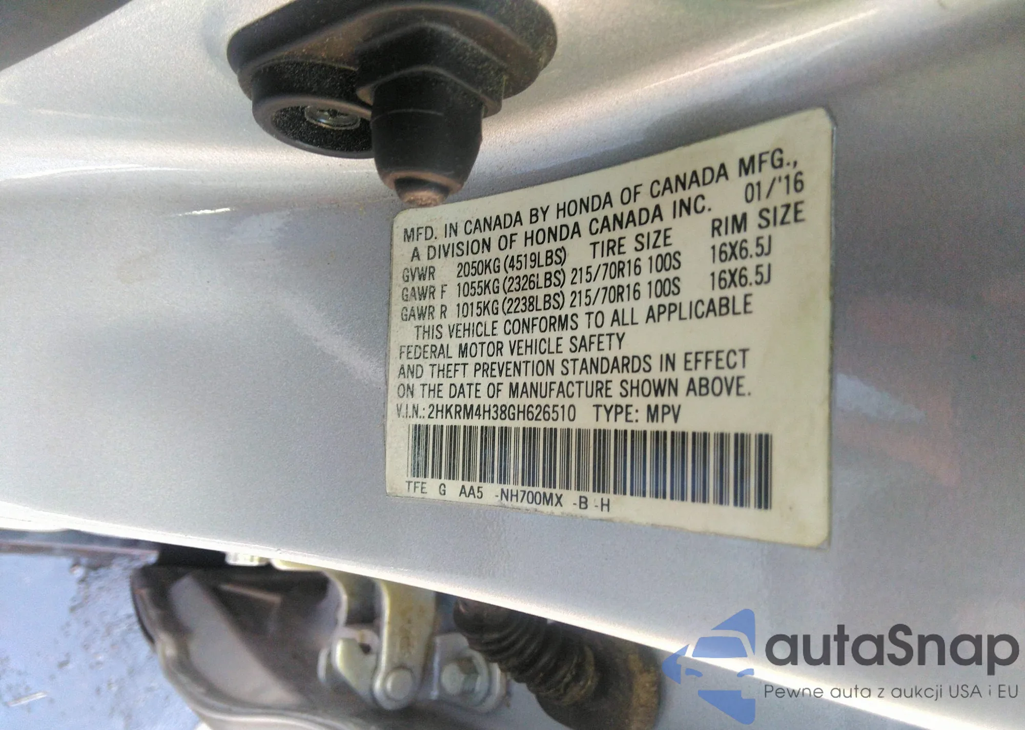 • VIN 2HKRM4H38GH626510
